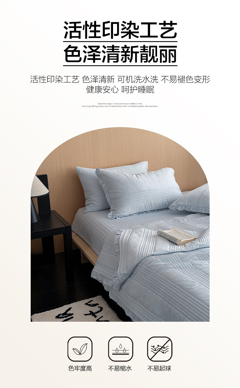 商品名称:漫调家纺 2026新款韩国莫代尔夏被床盖系列-花边款 海盐蓝