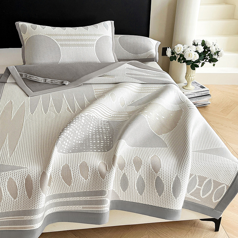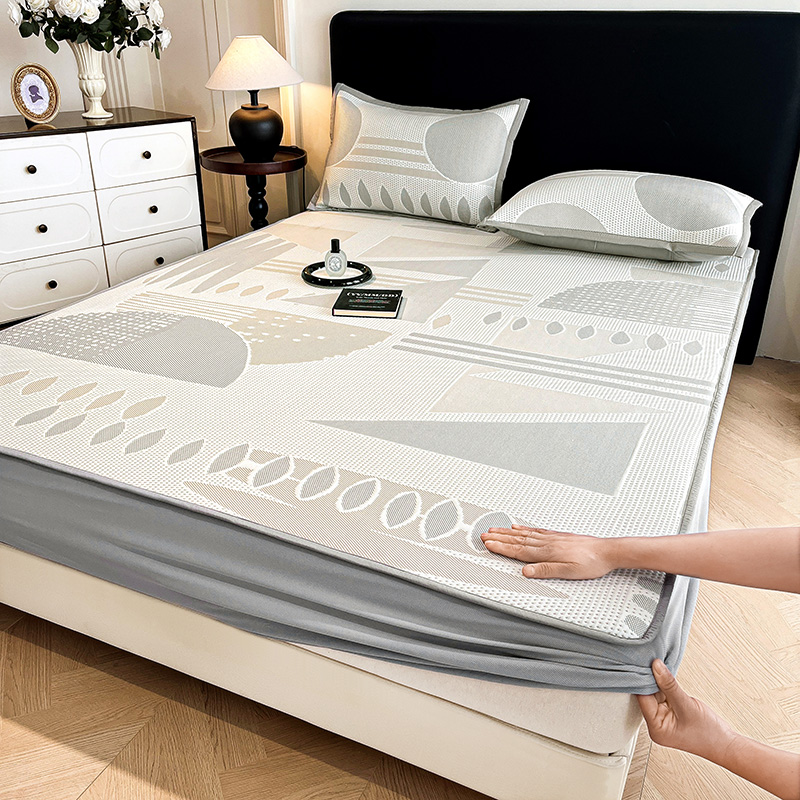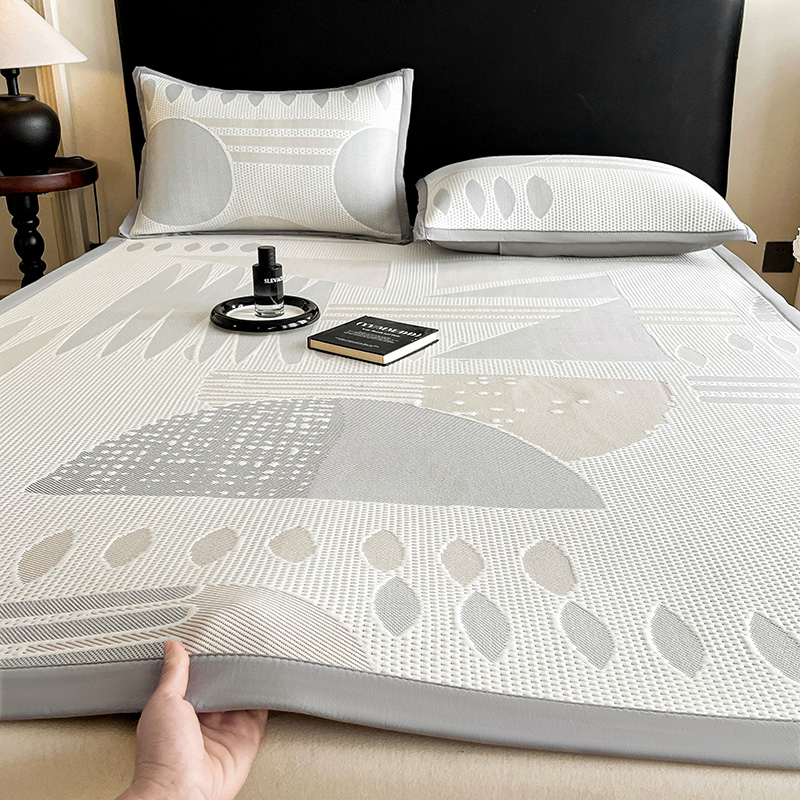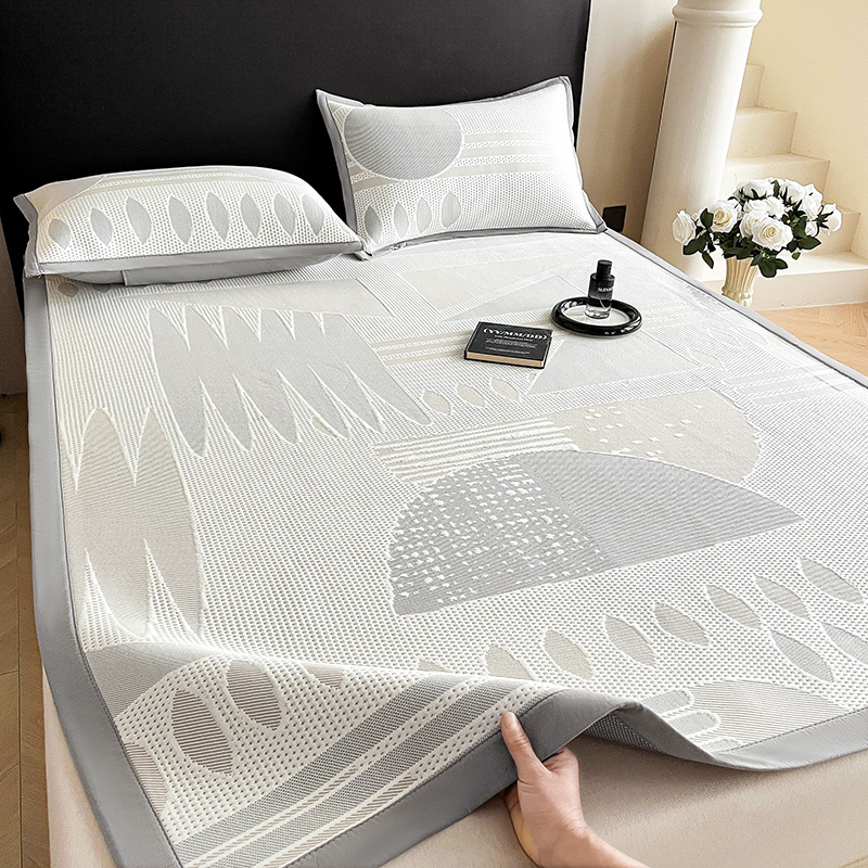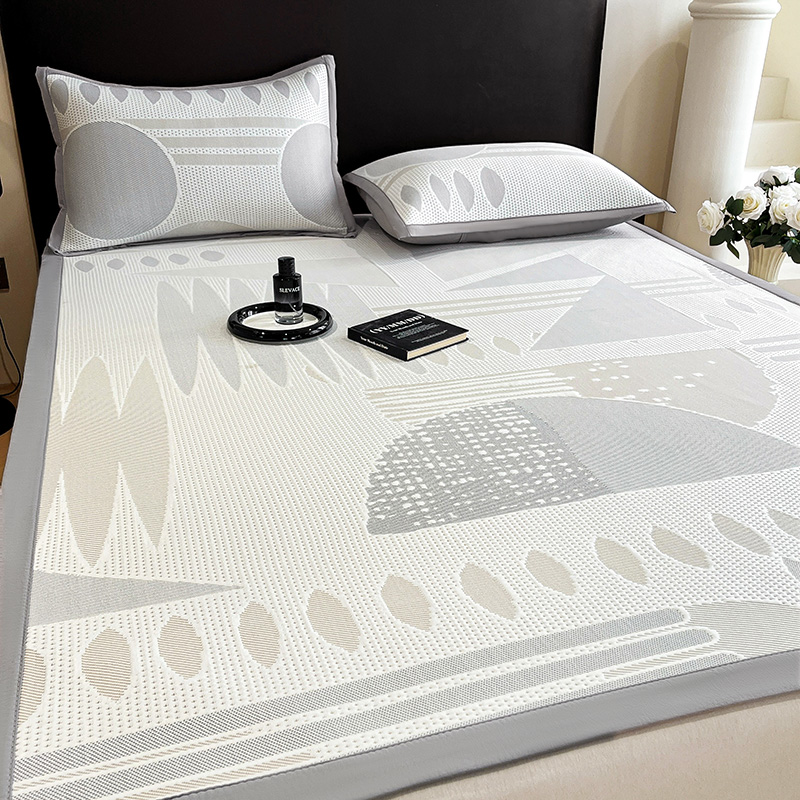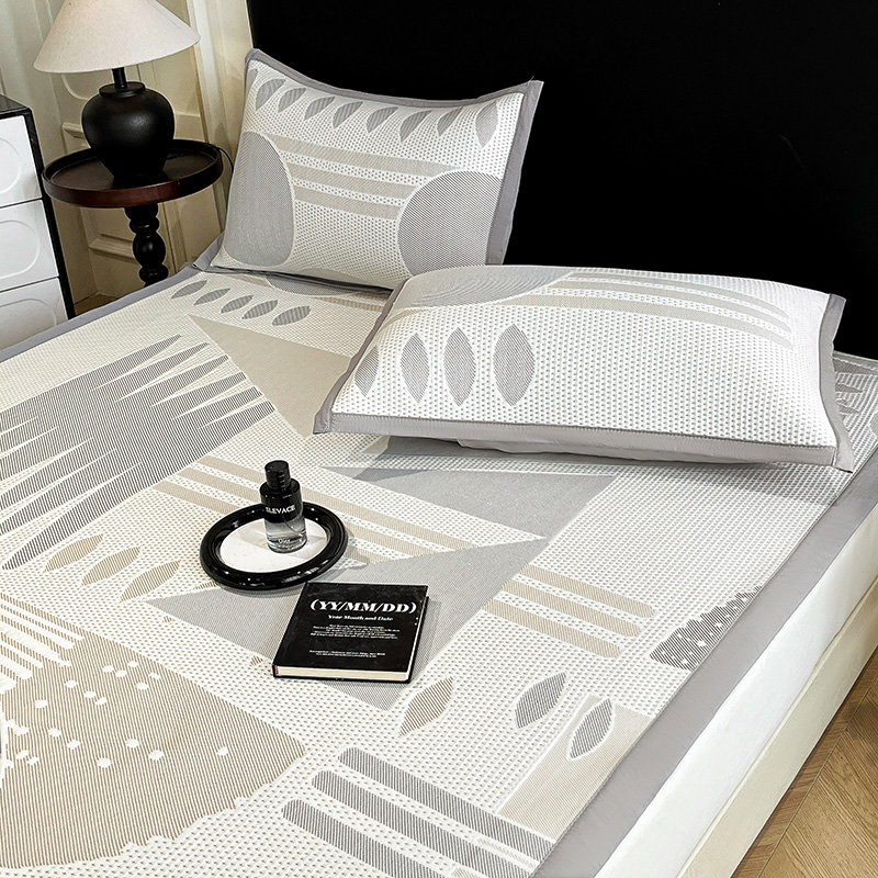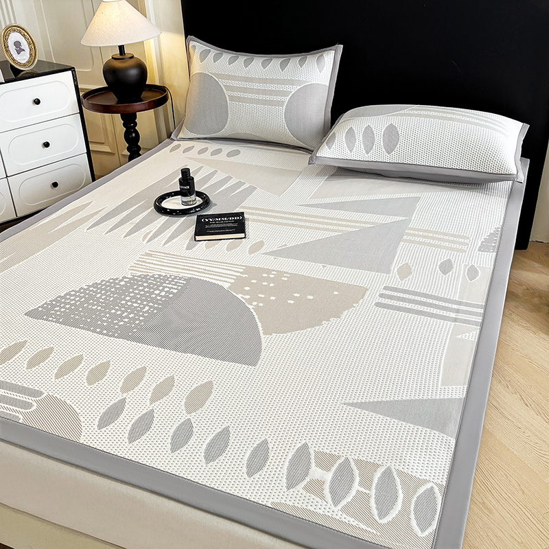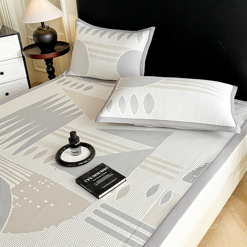 商品名称:雅诗帛 2026新款PE凉感丝凉席床笠款凉席席子三件套-几何 几何-灰