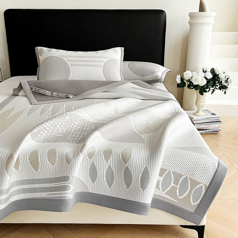 (总)雅诗帛 2026新款PE凉感冰丝席三件套-织序,床席织序-粉,床席织序-灰,床席织序-蓝,床席织序-绿