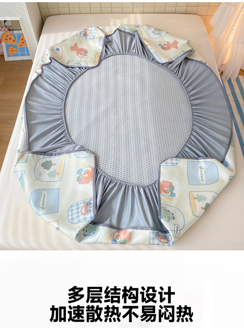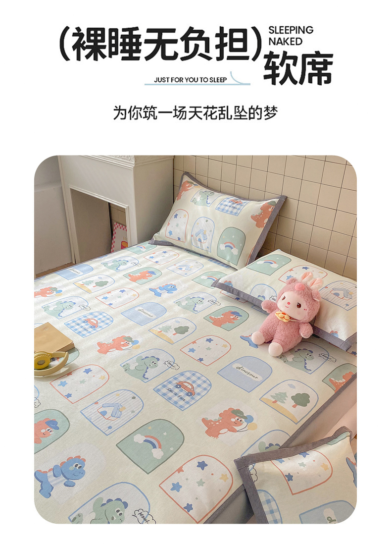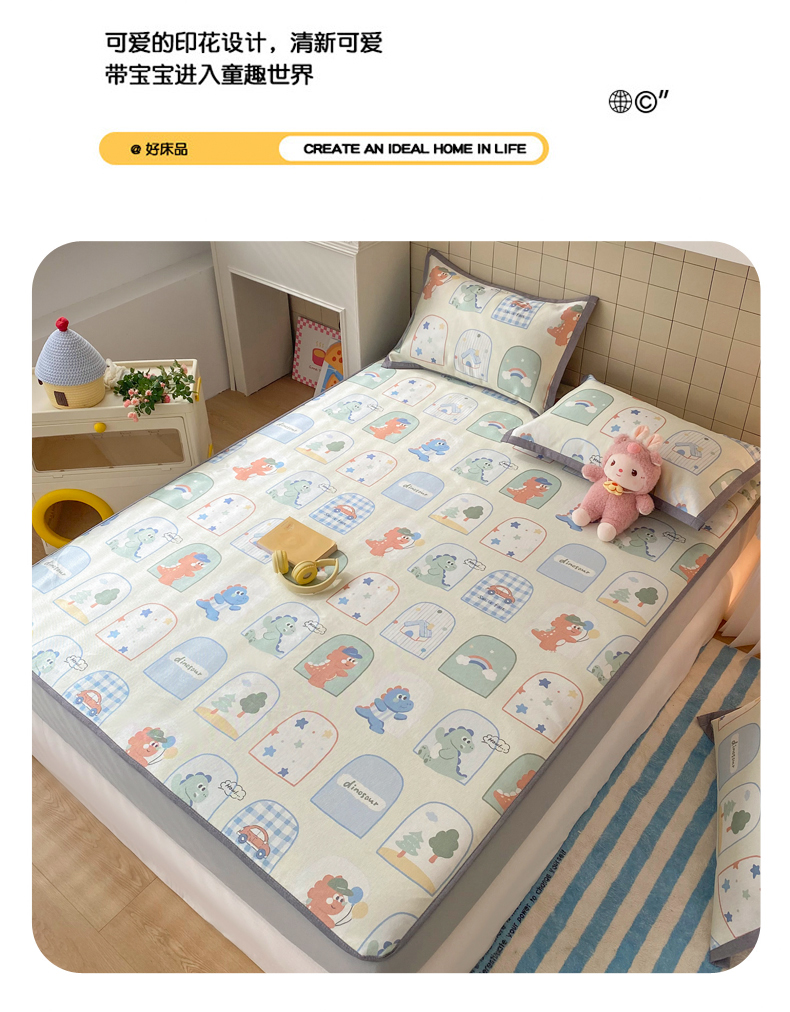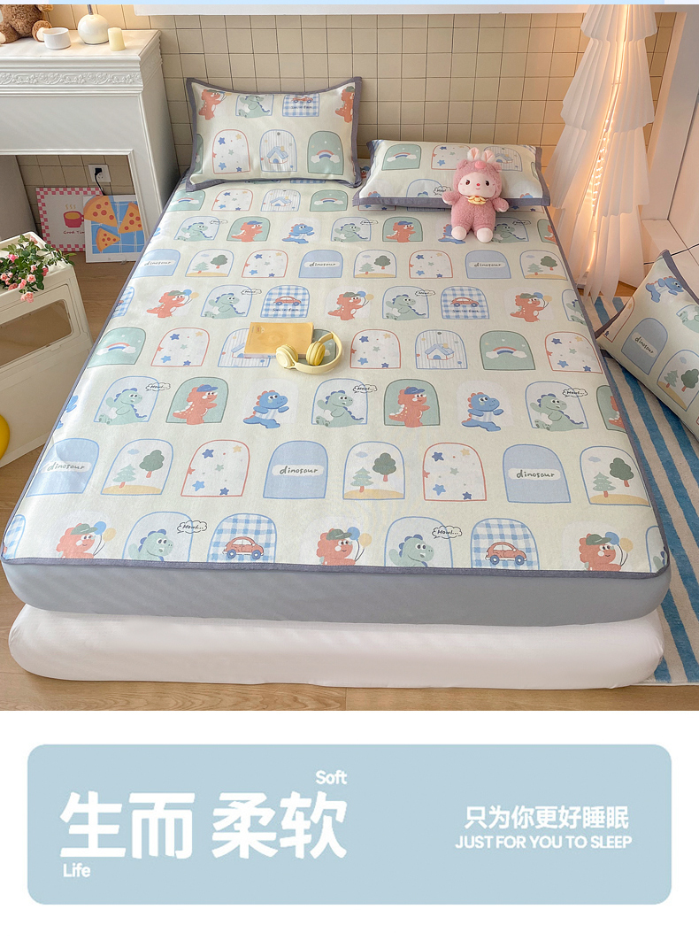 金盛纺 2026新款A类数码印花冰丝席(可定制)-床笠款 夏日萌龙记