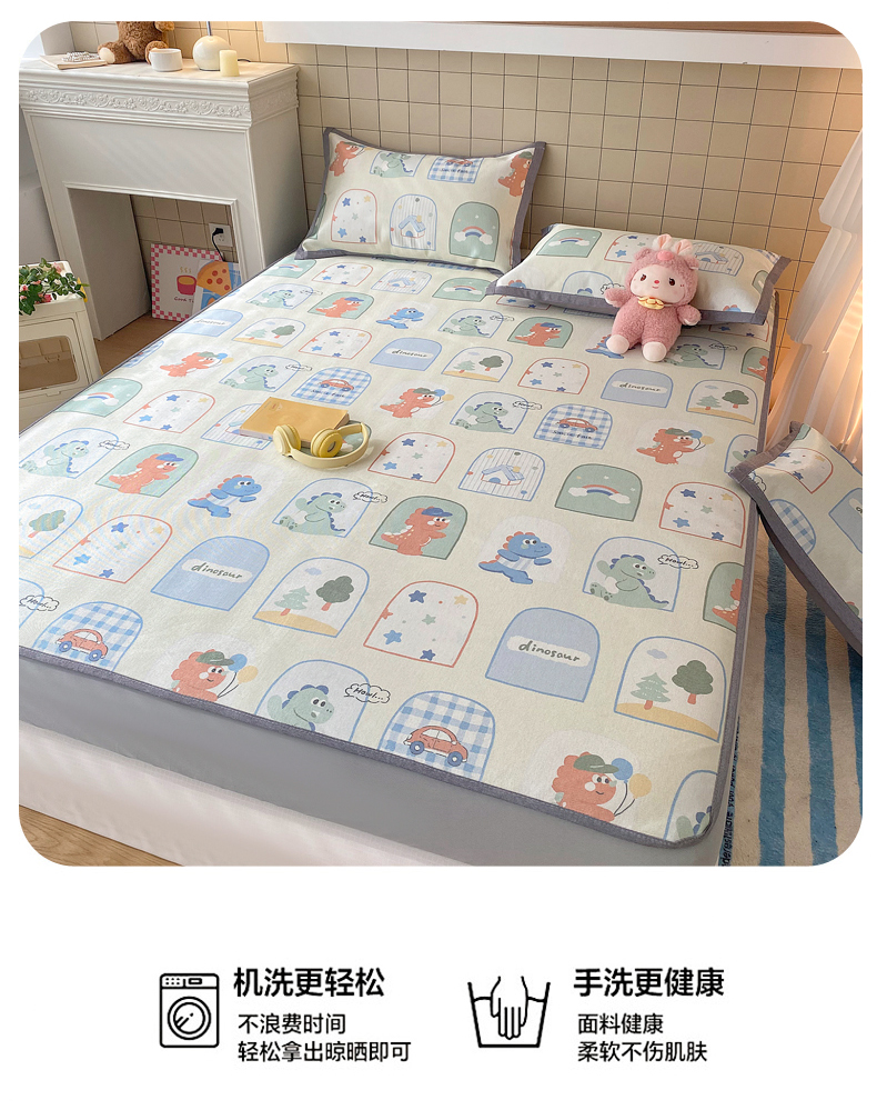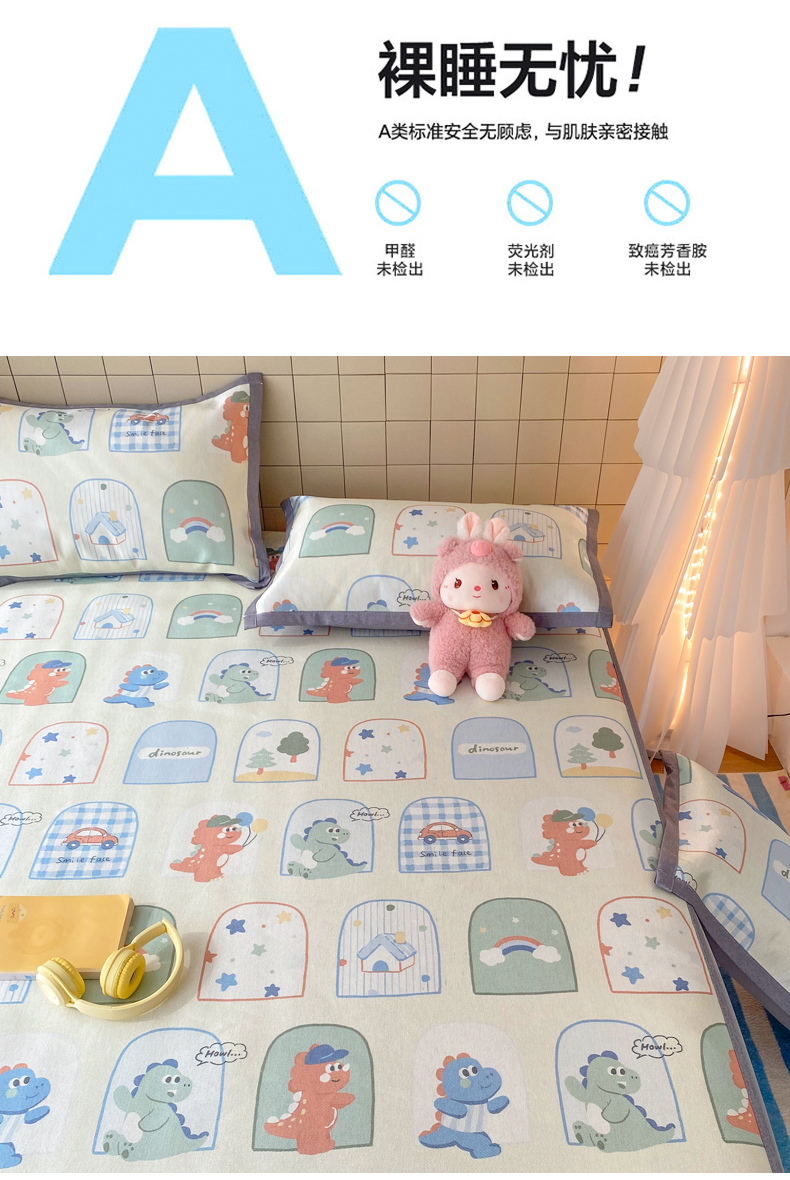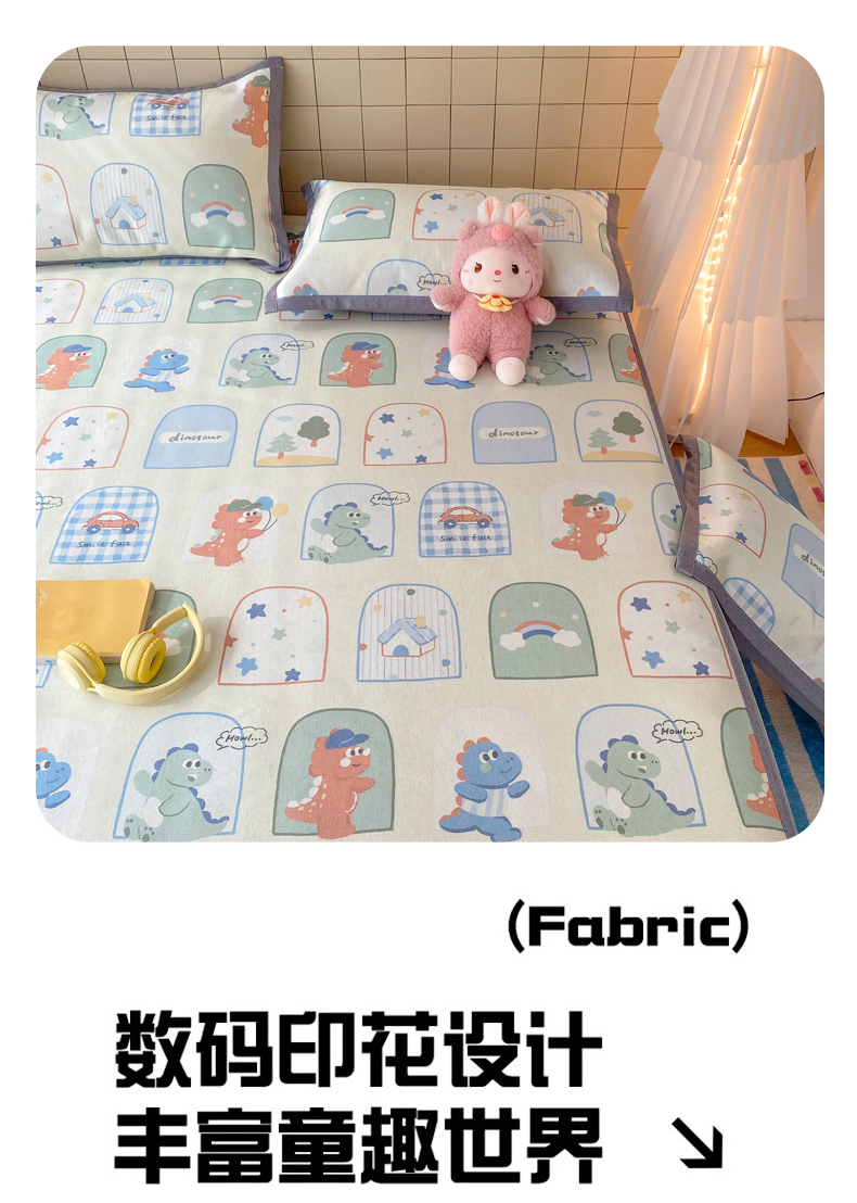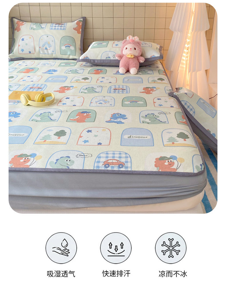 金盛纺 2026新款A类数码印花冰丝席(可定制)-床笠款 夏日萌龙记
