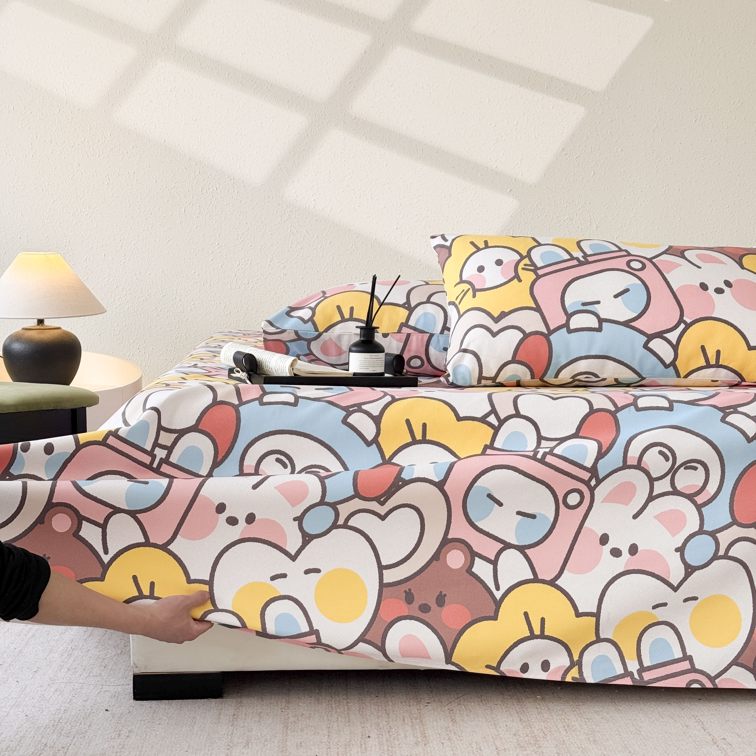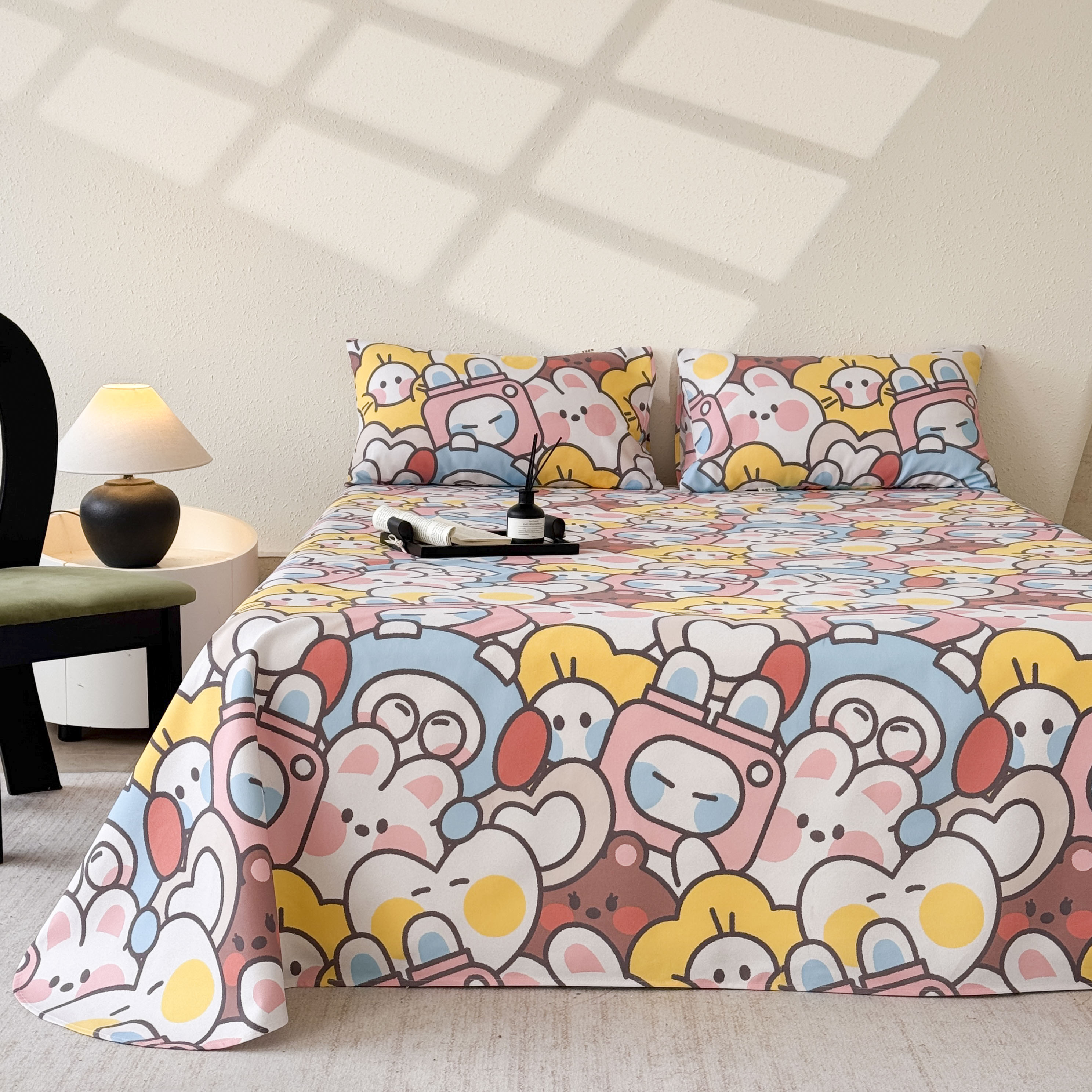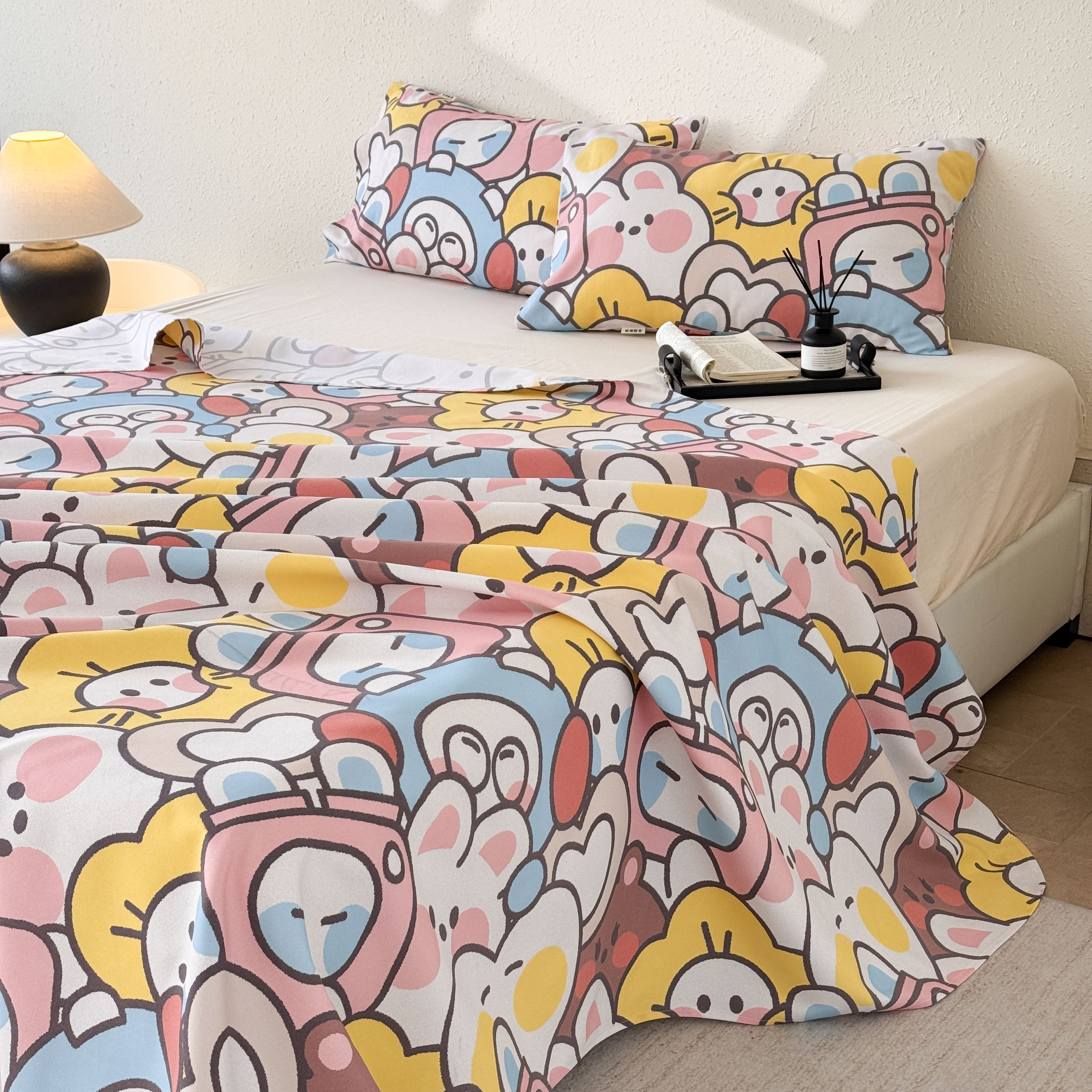 商品名称:遇安家纺 2026年新款原棉老粗布凉席三件套 白日漫游-粉