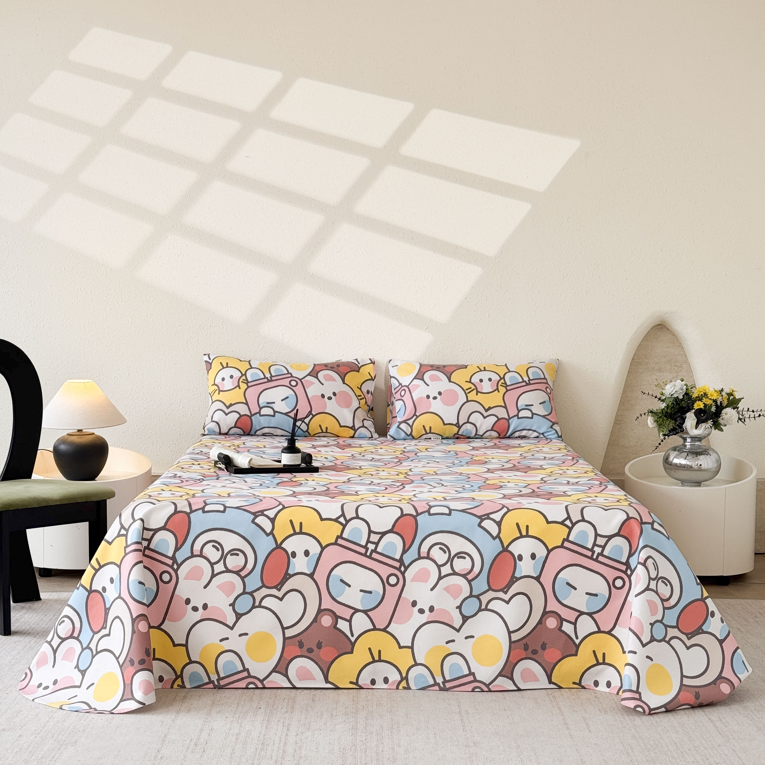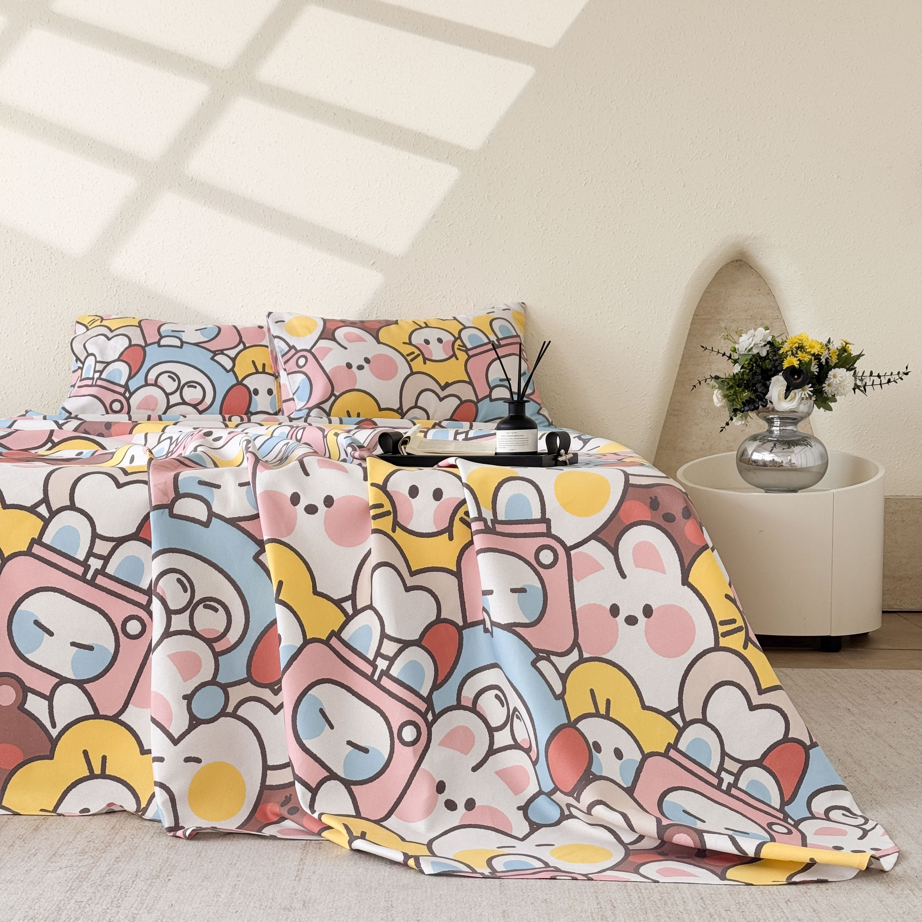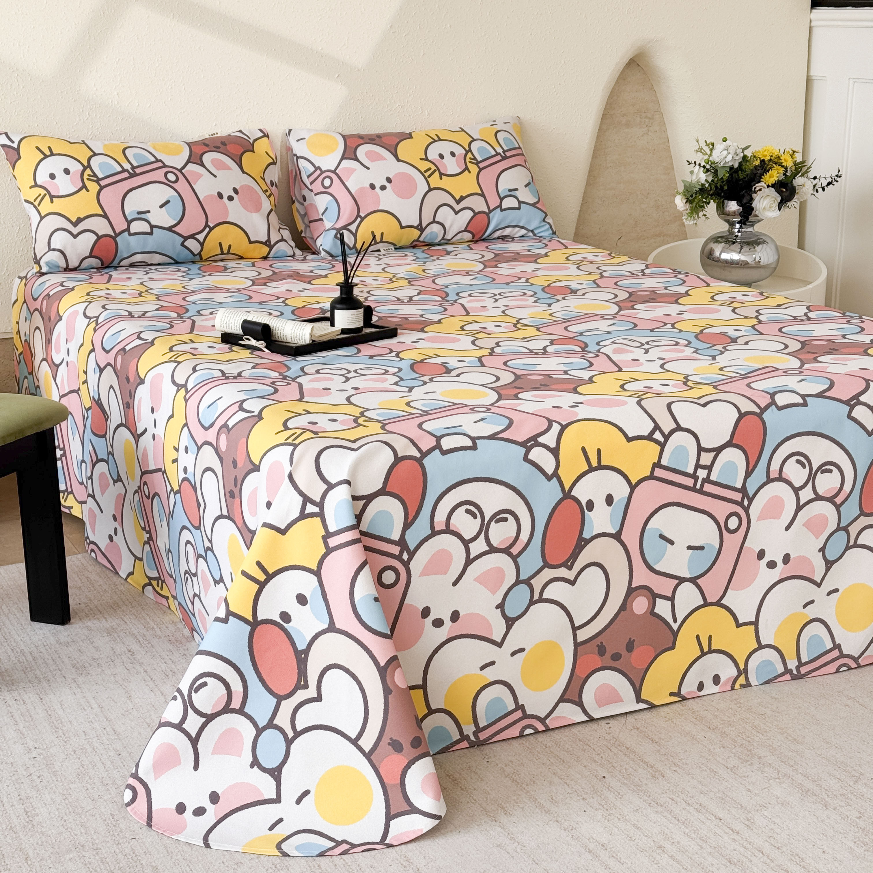 商品名称:遇安家纺 2026年新款原棉老粗布凉席三件套 白日漫游-粉