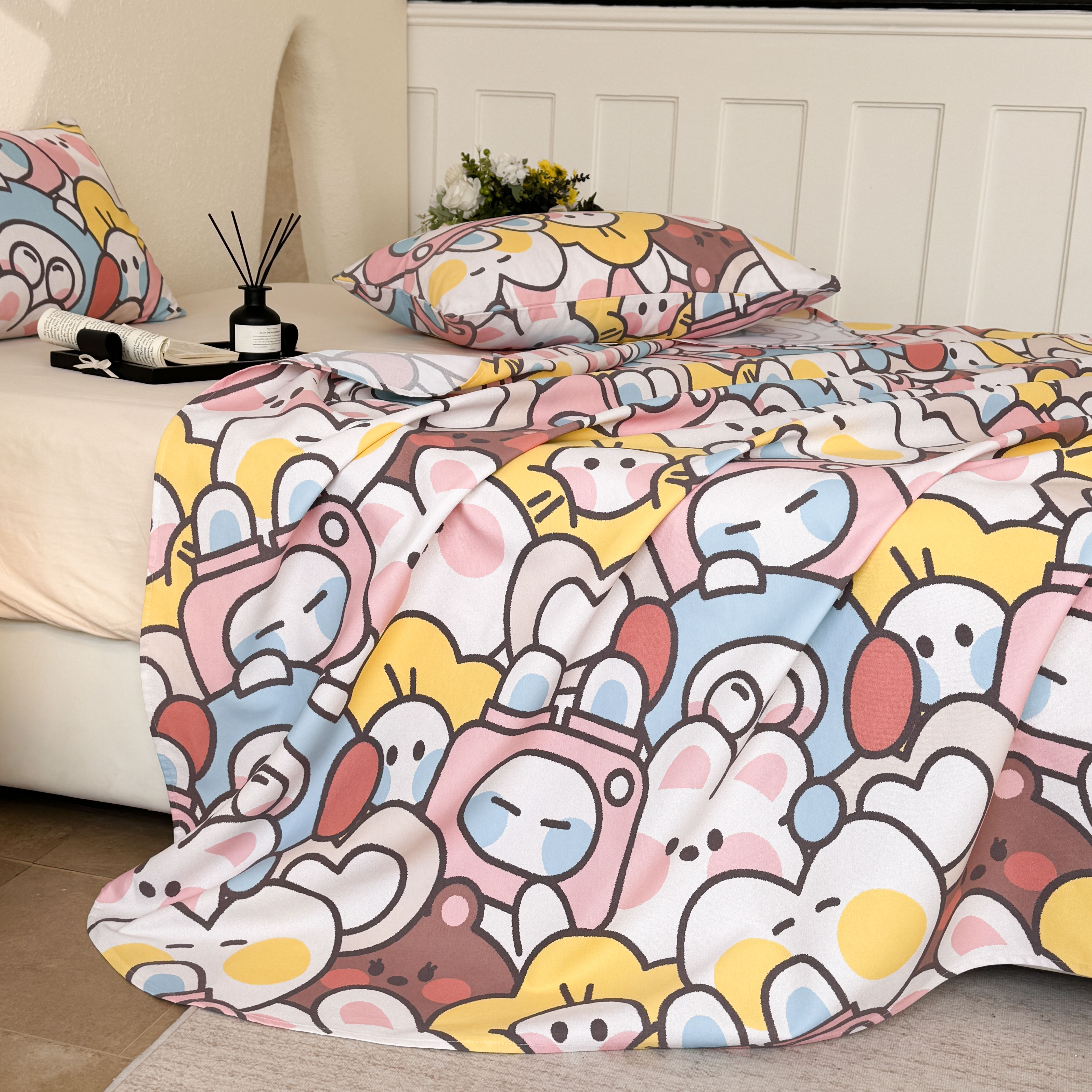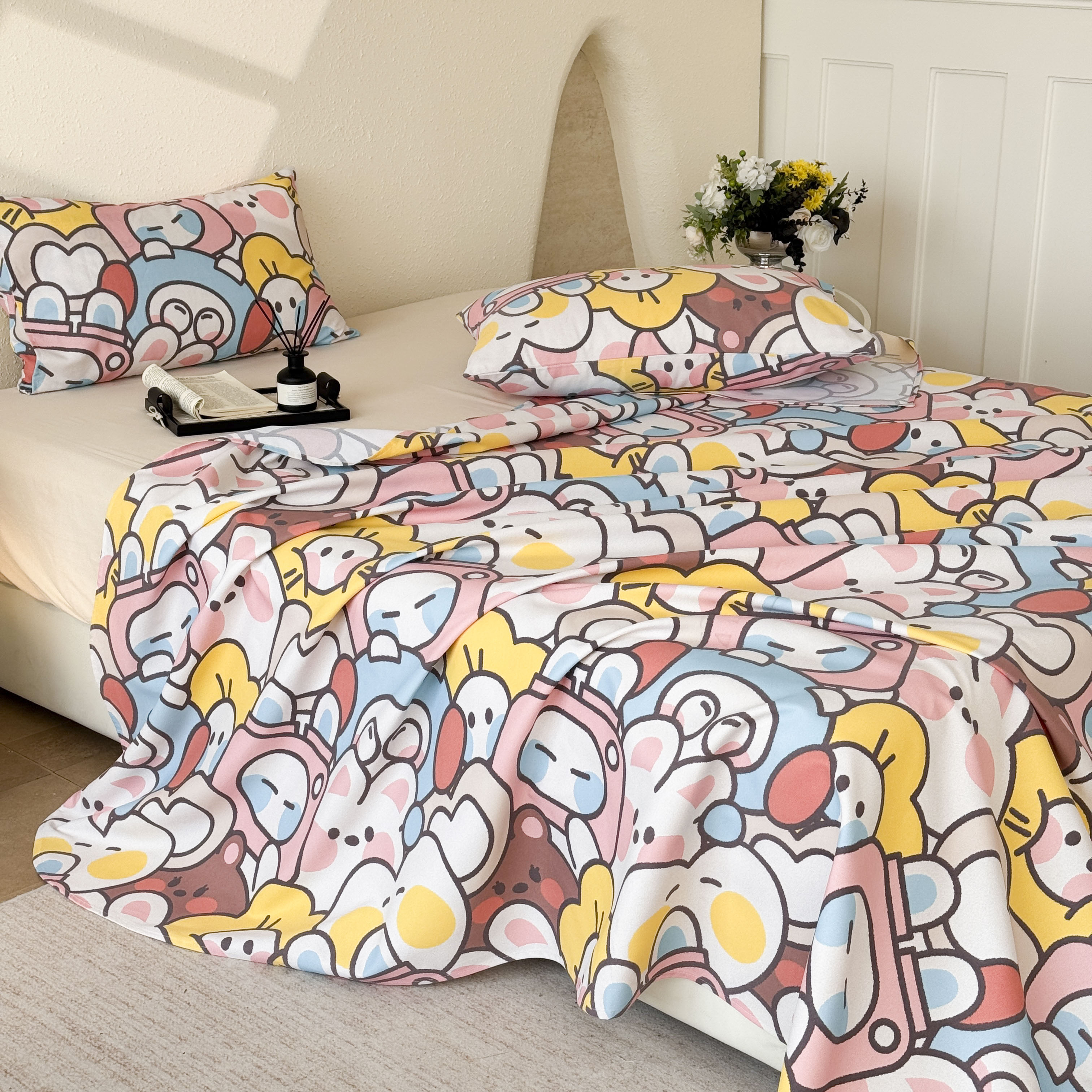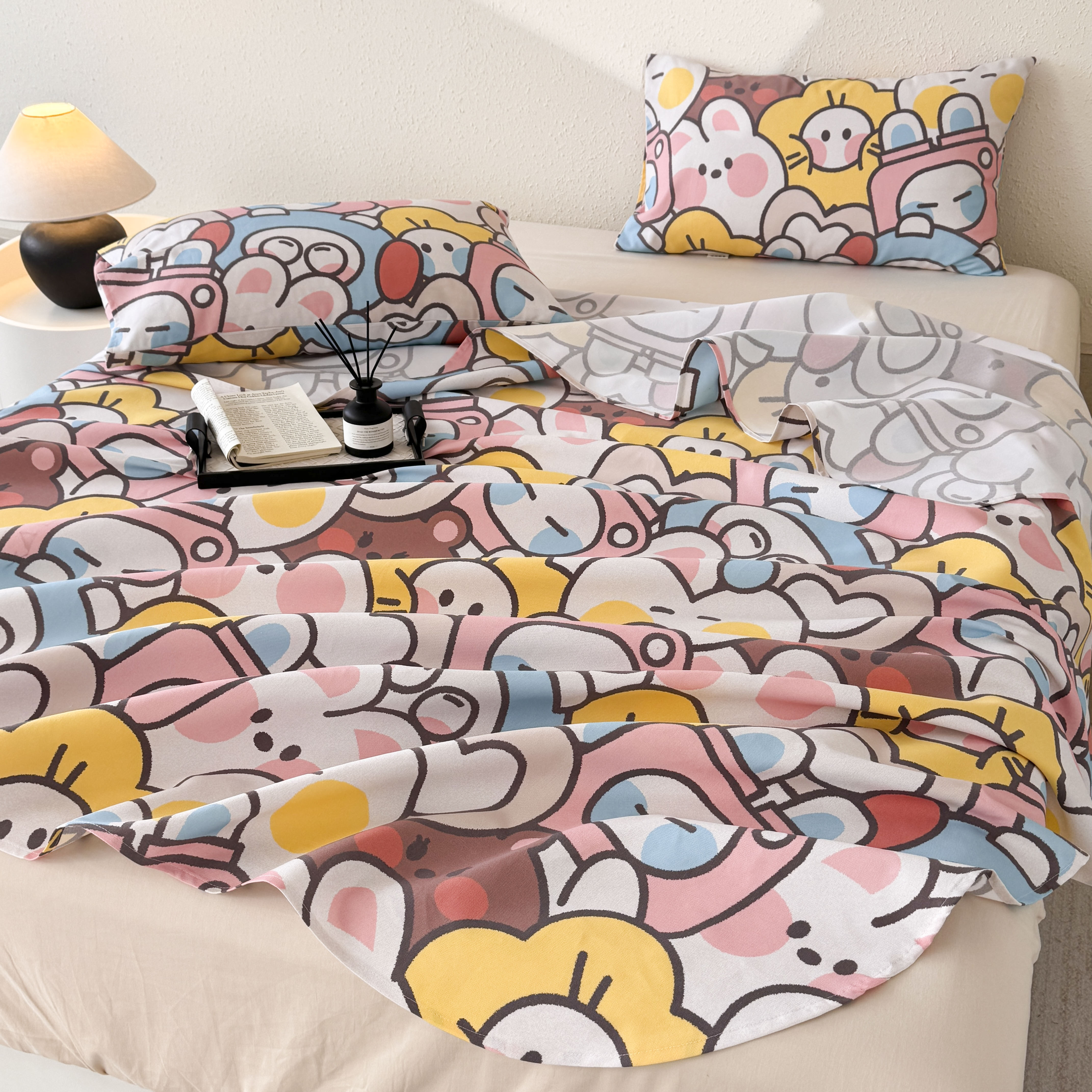 遇安家纺 2026年新款原棉老粗布凉席三件套 白日漫游-粉
