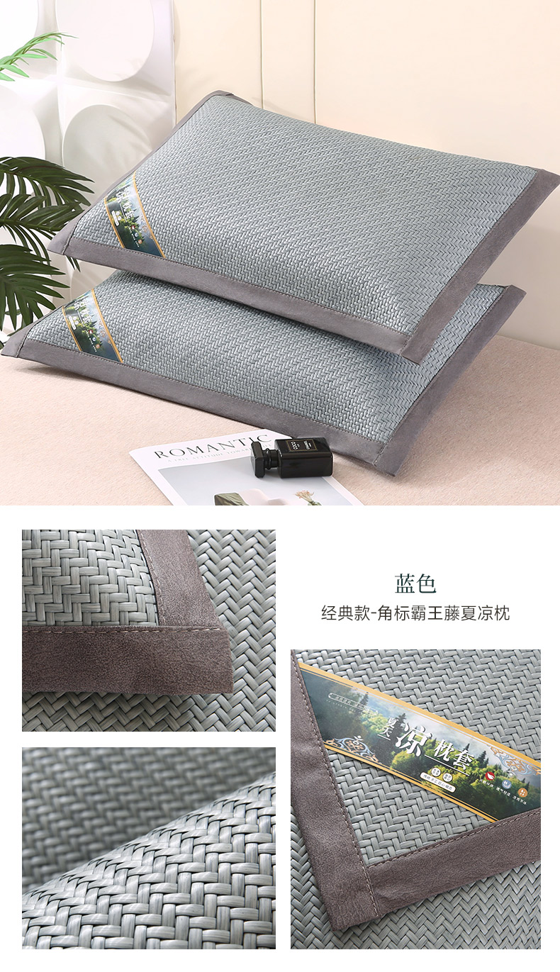 小牛席业 2026新款经典款-角标霸王藤夏凉枕藤枕头冰藤枕头冰丝枕豆豆枕头 蓝色