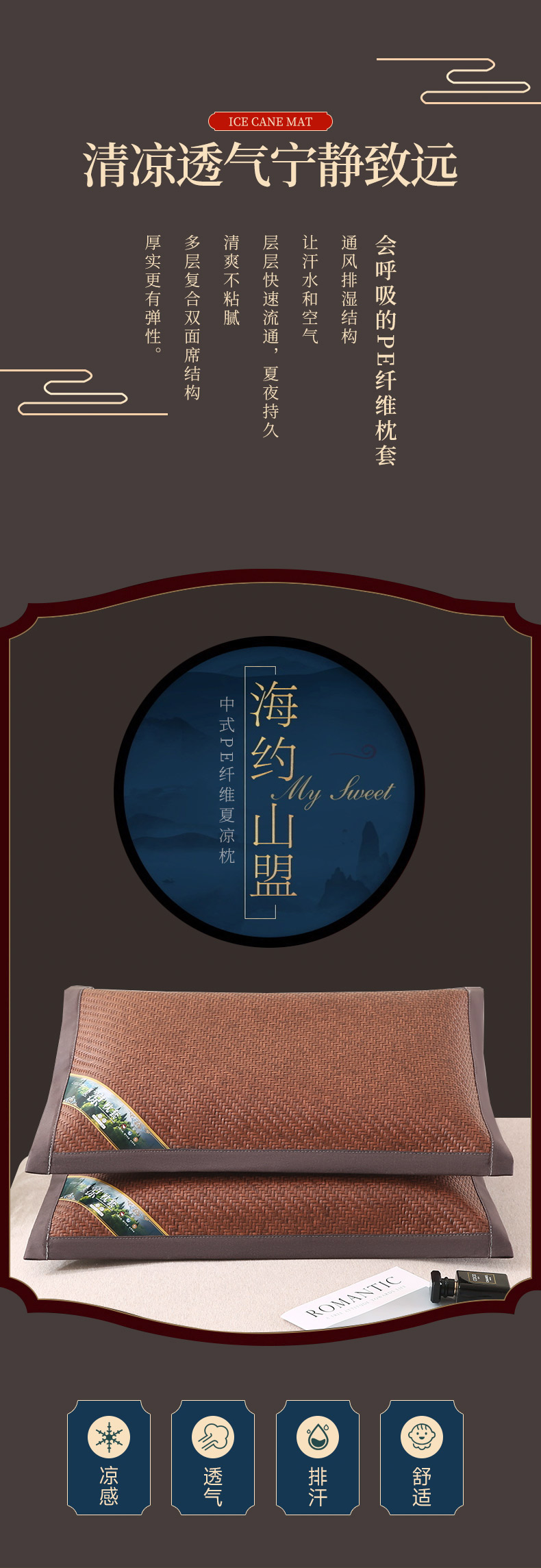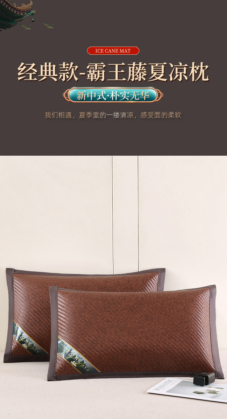 (总)小牛席业 2026新款经典款-角标霸王藤夏凉枕藤枕头冰藤枕头冰丝枕豆豆枕头,咖色,黄色,灰色,蓝色
