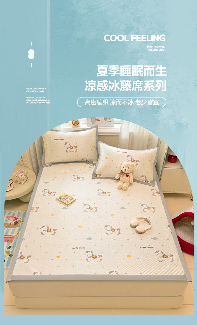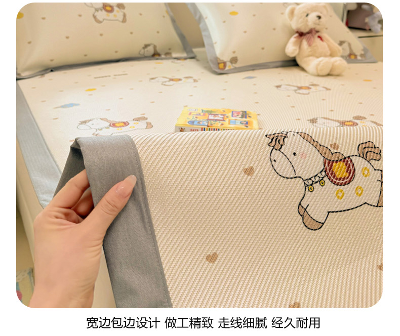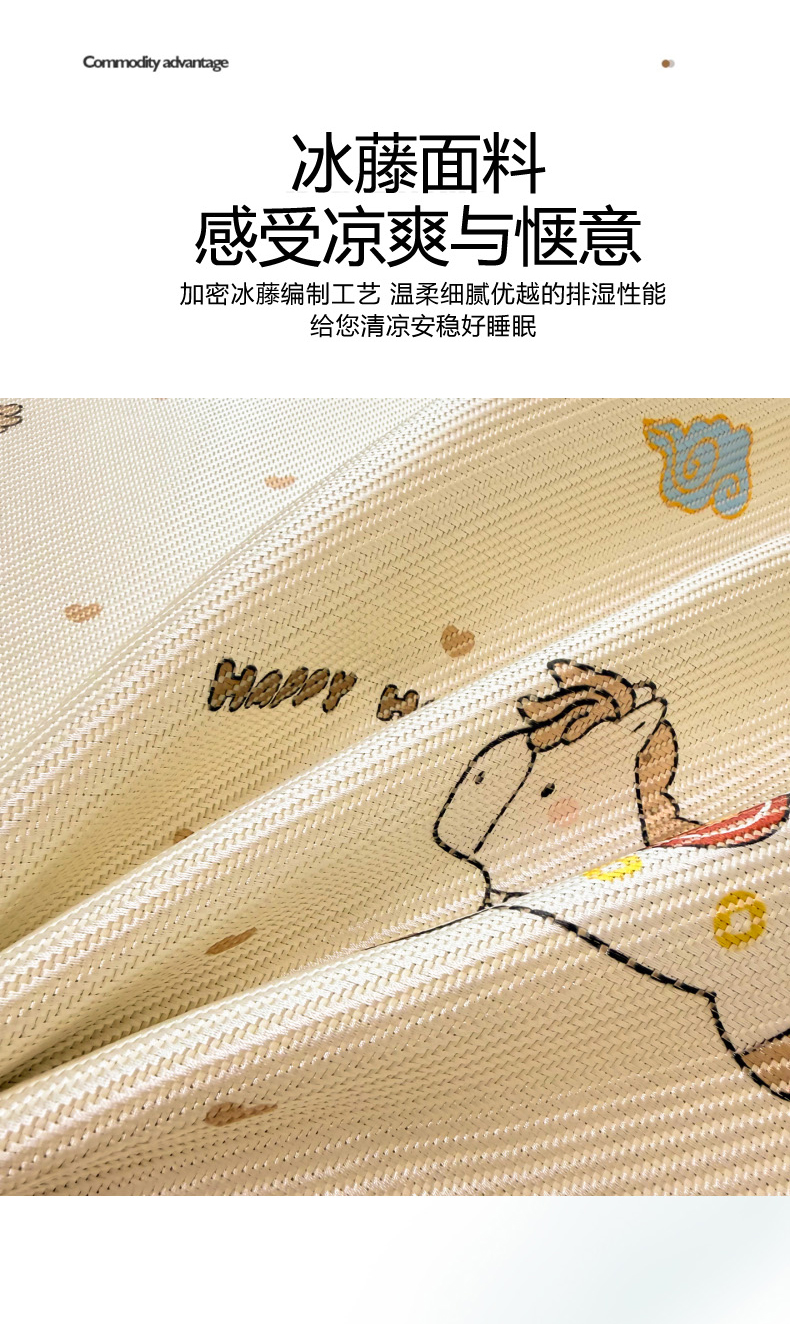 商品名称:慕尚家纺 2026新款清新凉感冰藤席床笠款 马踏祥光