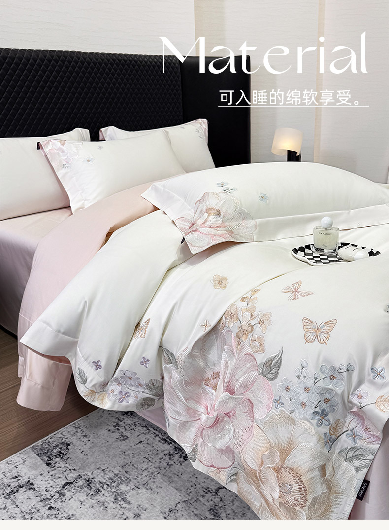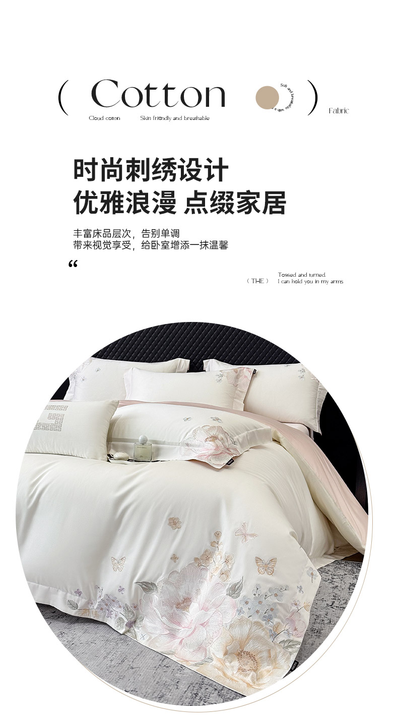 当前位置: 91家纺网 > 商品网购 > 床品套件 > 四件套 > 长绒棉四件套 > 2026新品高档轻奢风100支贡缎长绒棉纯棉四件套全棉重工刺绣被套床单床笠新品四季款床上用品 花影-白粉