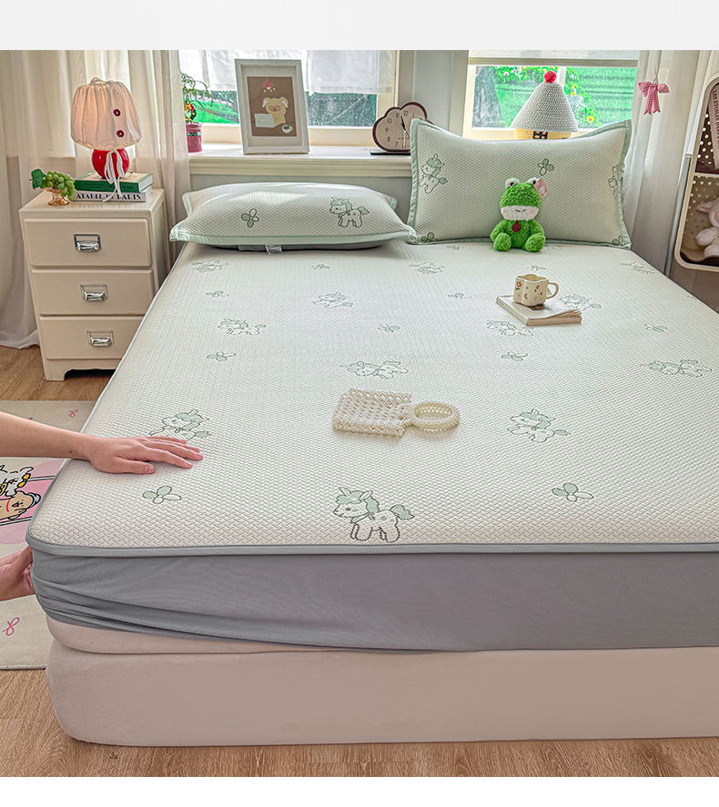 • 91家纺网 家纺一手货源 找家纺 源舍家纺 2026新款A类PE卡通凉席三件套小红书爆款可水洗空调软席凉感值超0.25萌驹小马床笠款系列 萌驹-薄荷