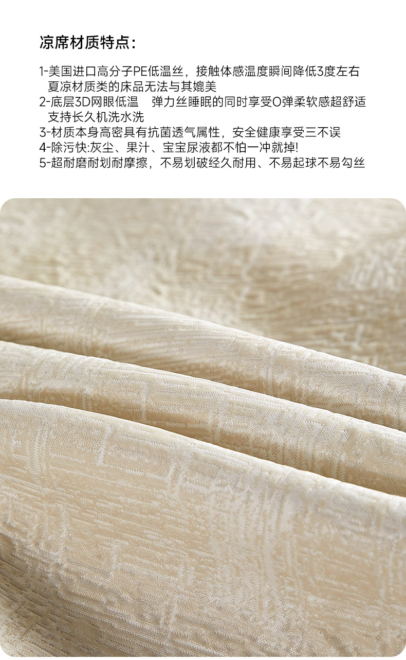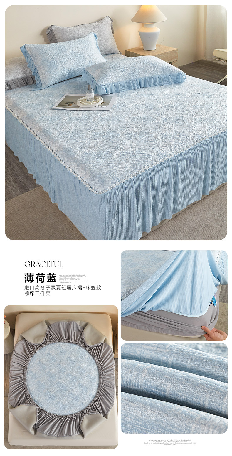 (总)桂雅居 2026新款高分子冰感蕾丝床裙床笠款凉席三件套,浅夏桃风,清氧浅绿,柔雾奶咖,素影灰纱,云漫冰蓝