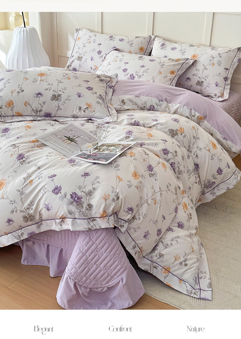 (总)星光耀 2026新款A类高克重斜纹云柔棉床盖四件套,茶礼·远山紫,茶礼·梅子红,边庭,禅弥,花棠,岚语