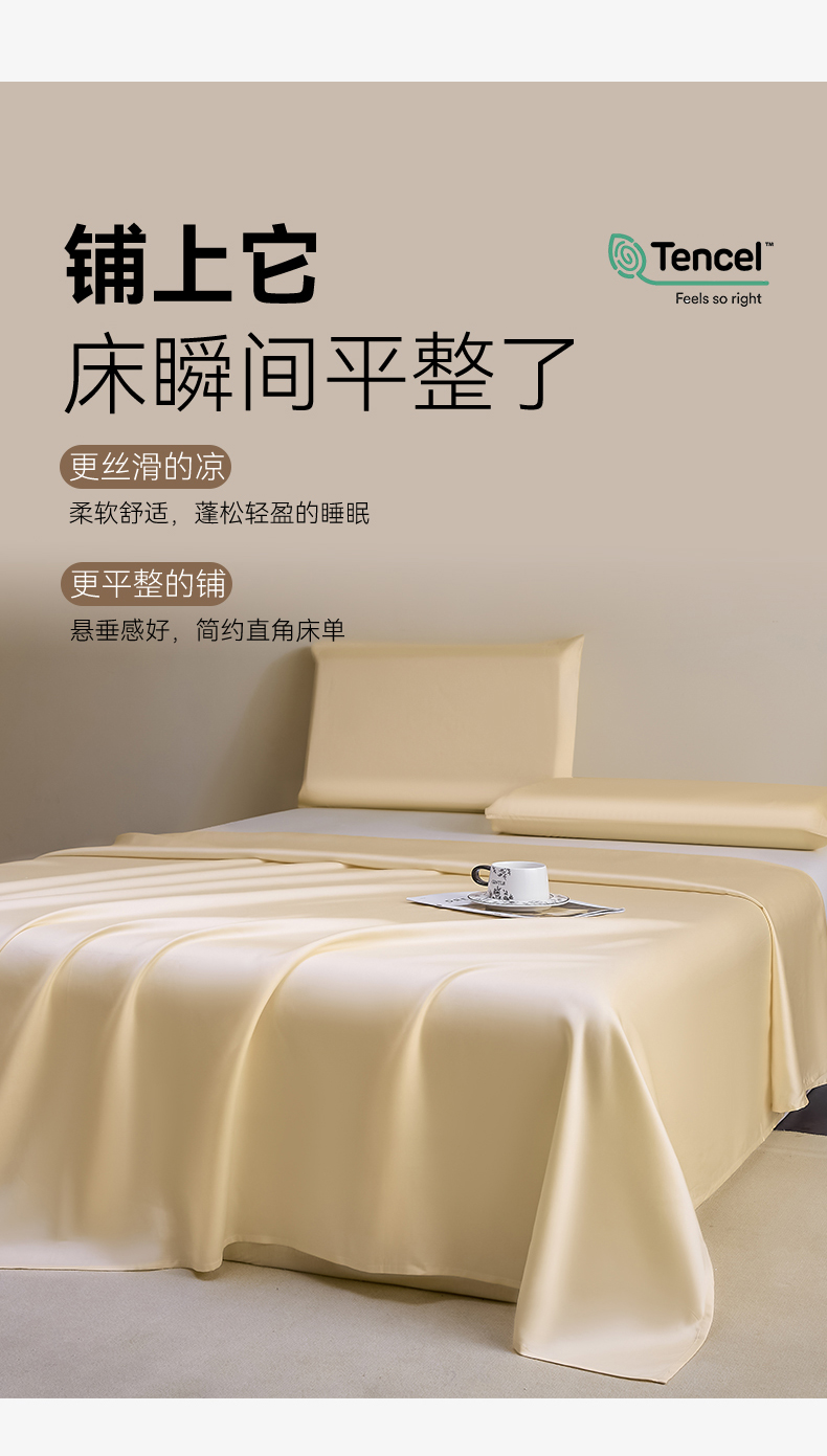 DC 2026新款莱赛尔天丝纯色单品床单 杏白