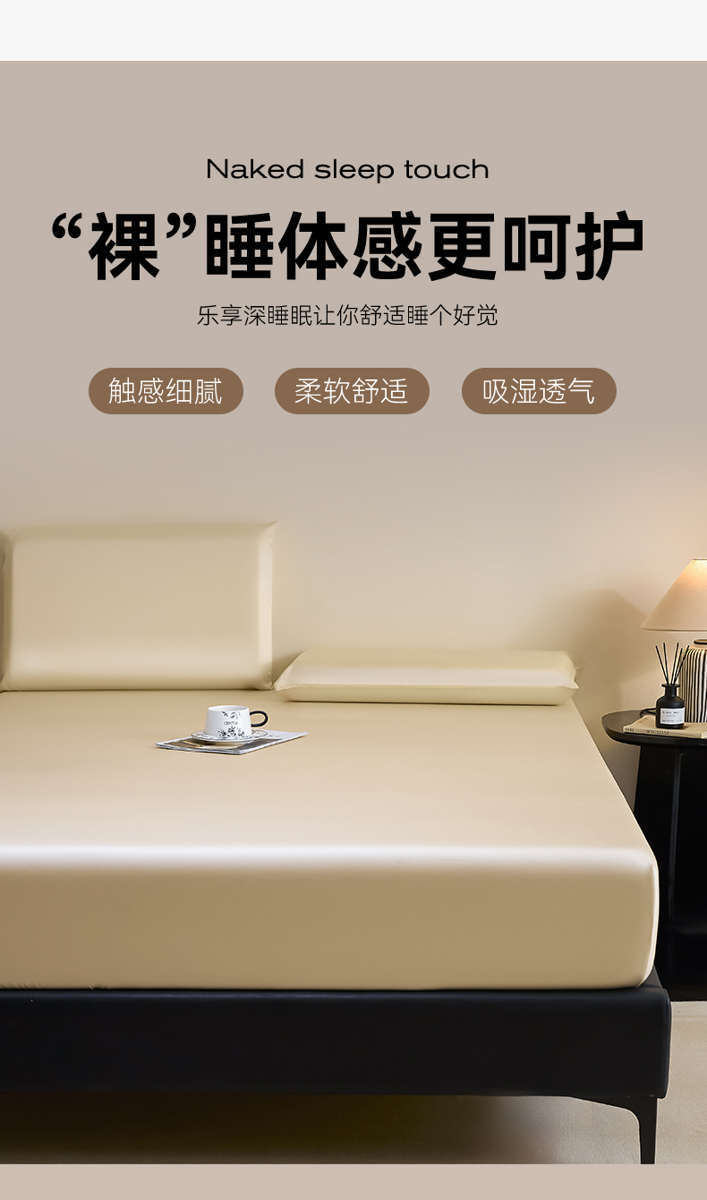 DC 2026新款莱赛尔天丝纯色单品床笠 卡其