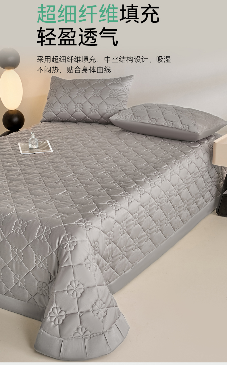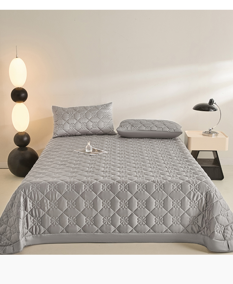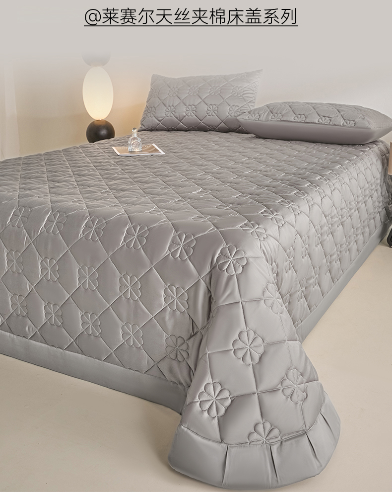 DC 2026新款莱赛尔天丝夹棉花朵绗缝单品床盖 经典灰