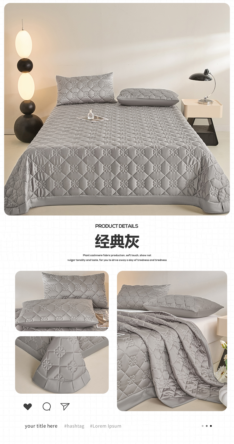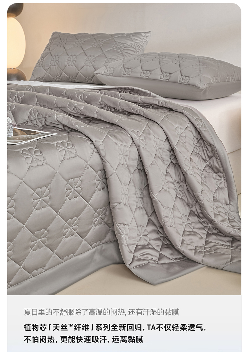 商品名称:DC 2026新款莱赛尔天丝夹棉花朵绗缝单品床盖 经典灰