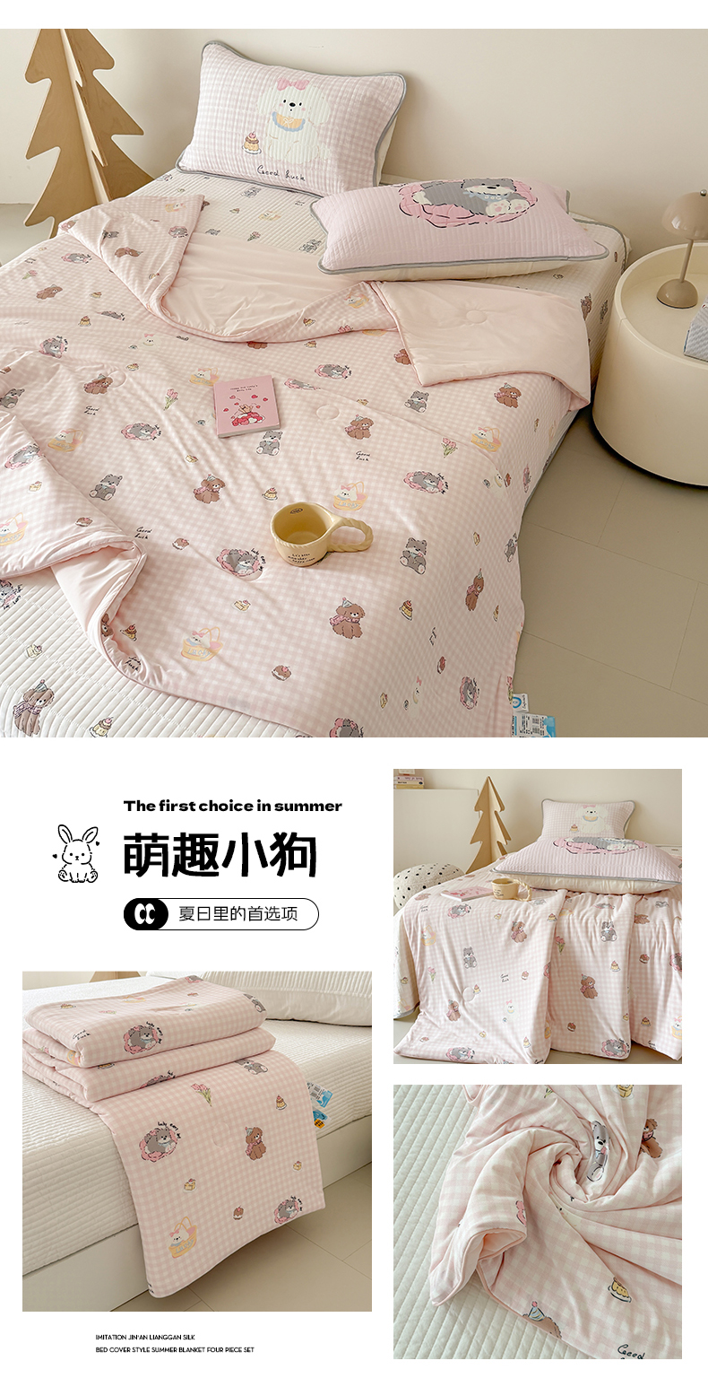 商品名称:吾欢心 2026夏季新款仿锦安凉感丝床盖款夏被四件套可可机洗凉感值大于0.2 乖乖小狗
