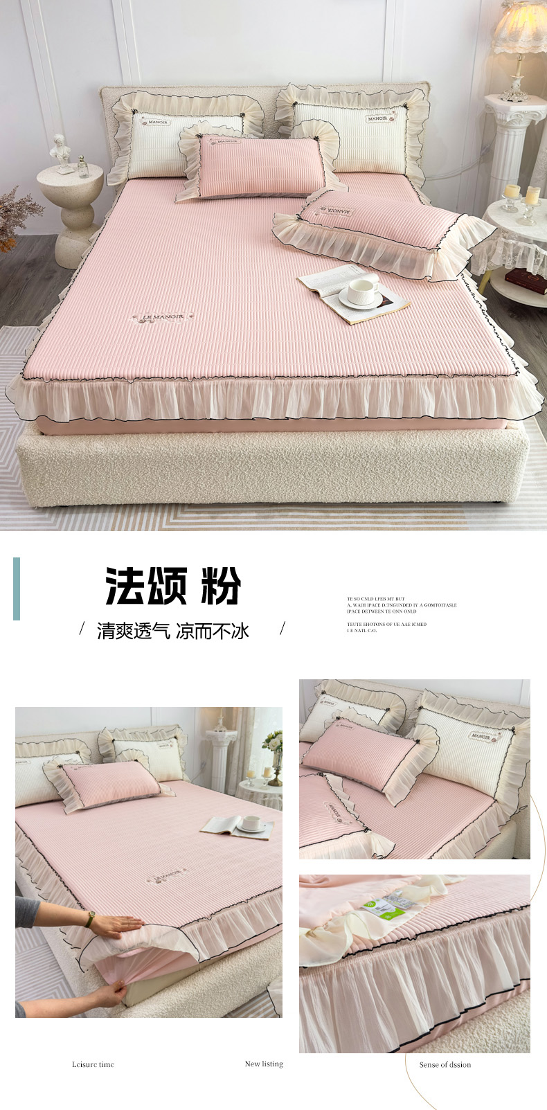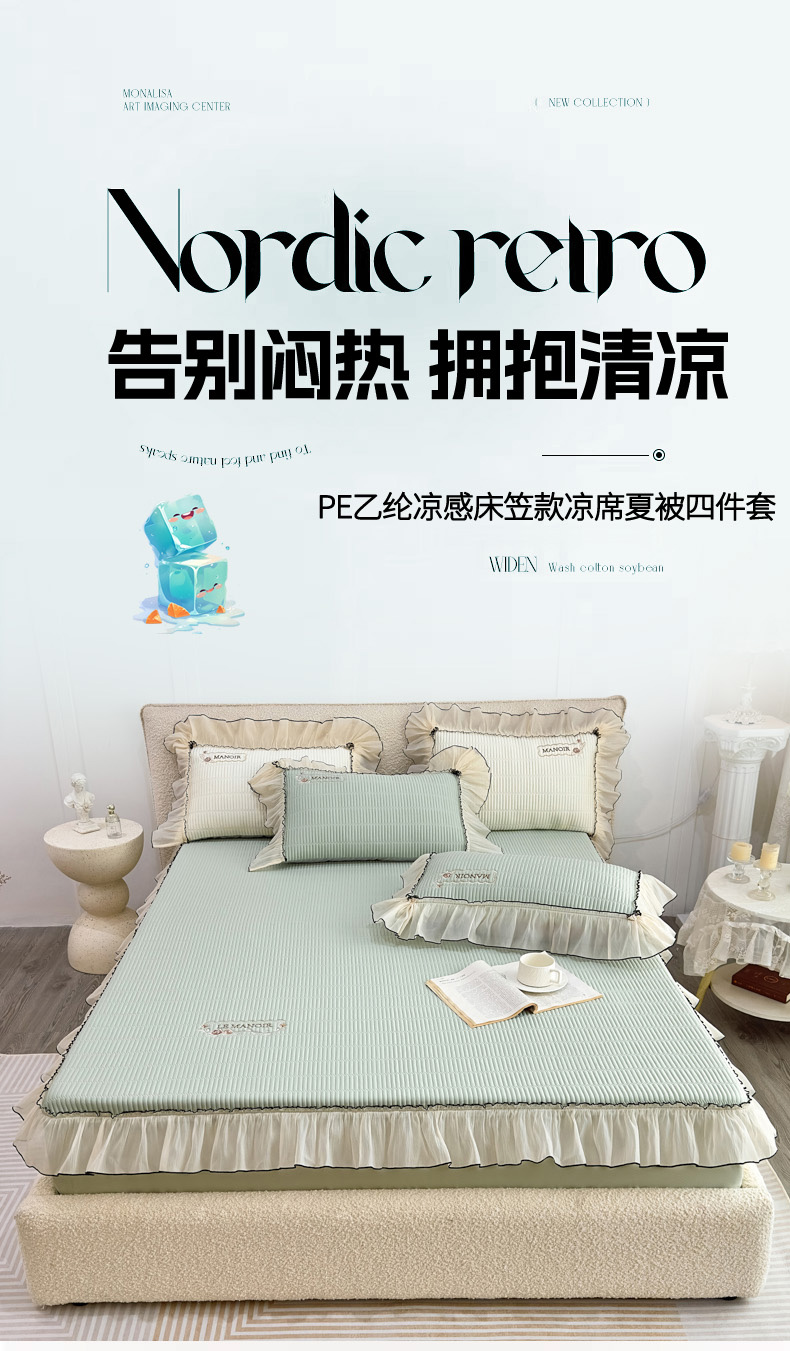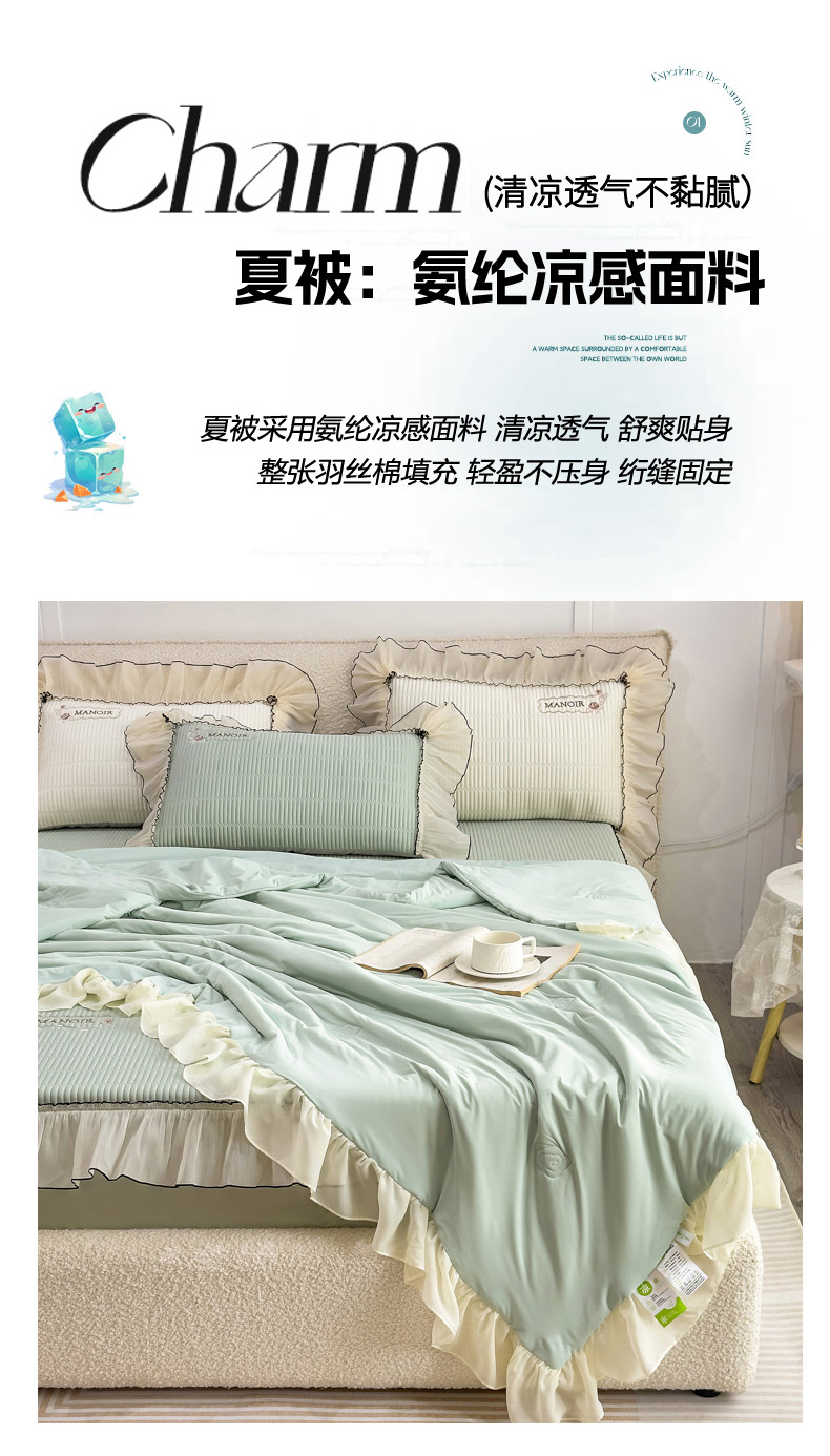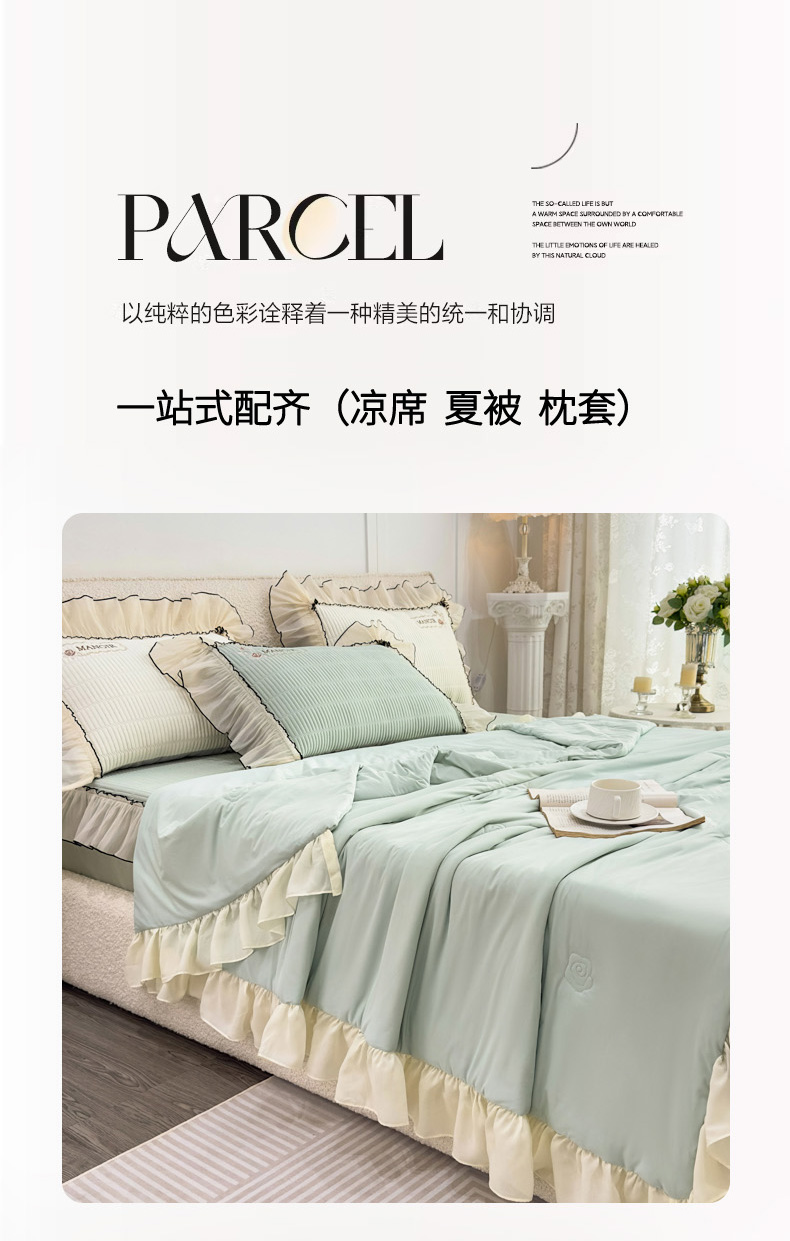 当前位置: 91家纺网 > 商品网购 > 床品套件 > 四件套 > 夏被四件套 > (总)菊上家纺 2026新款法式风PE床笠款凉席夏被夏凉被空调被四件套-法颂