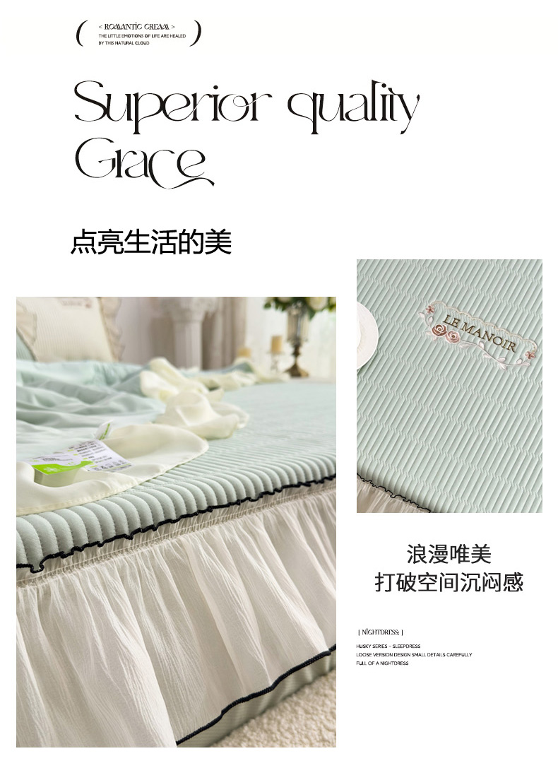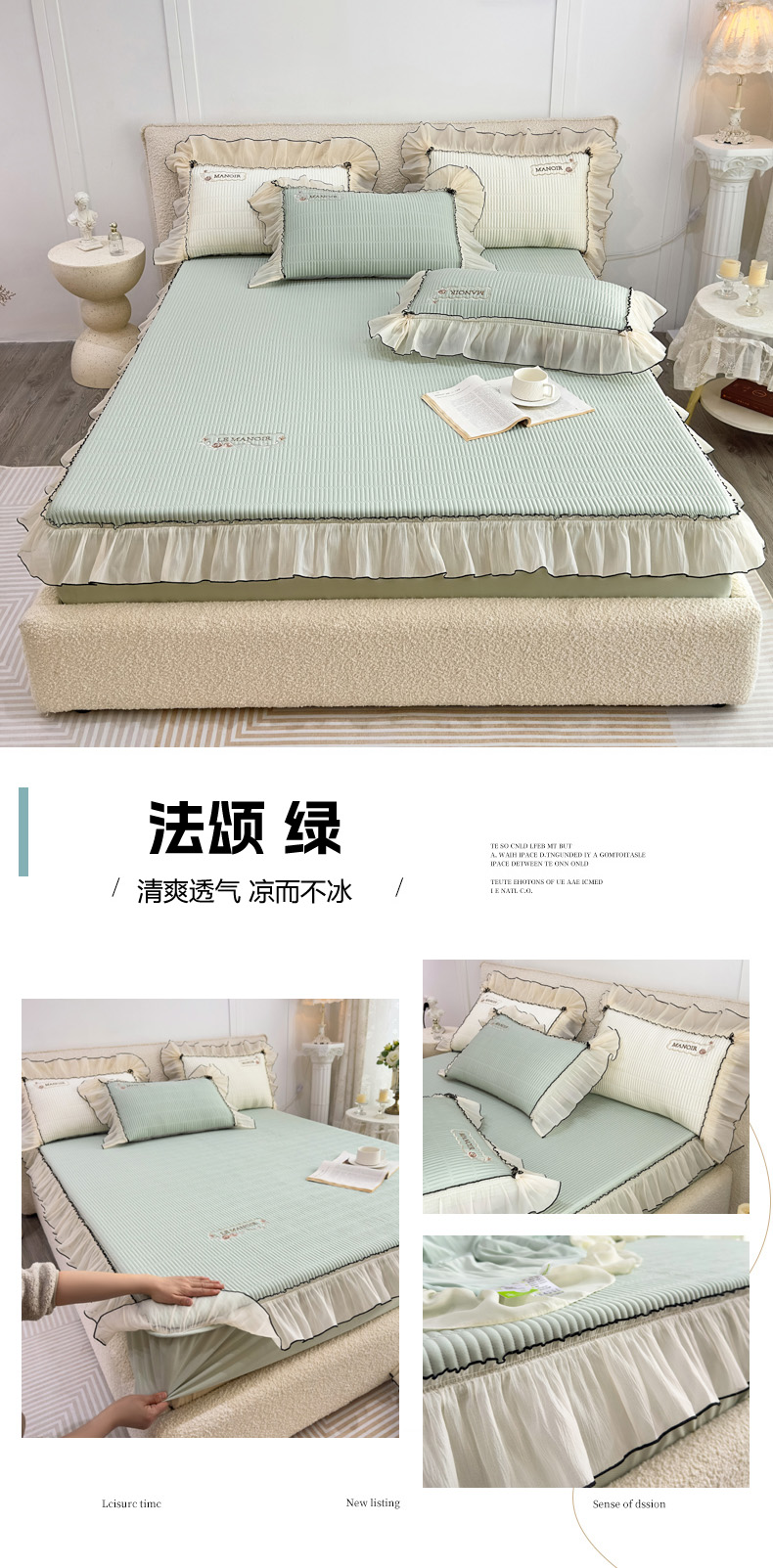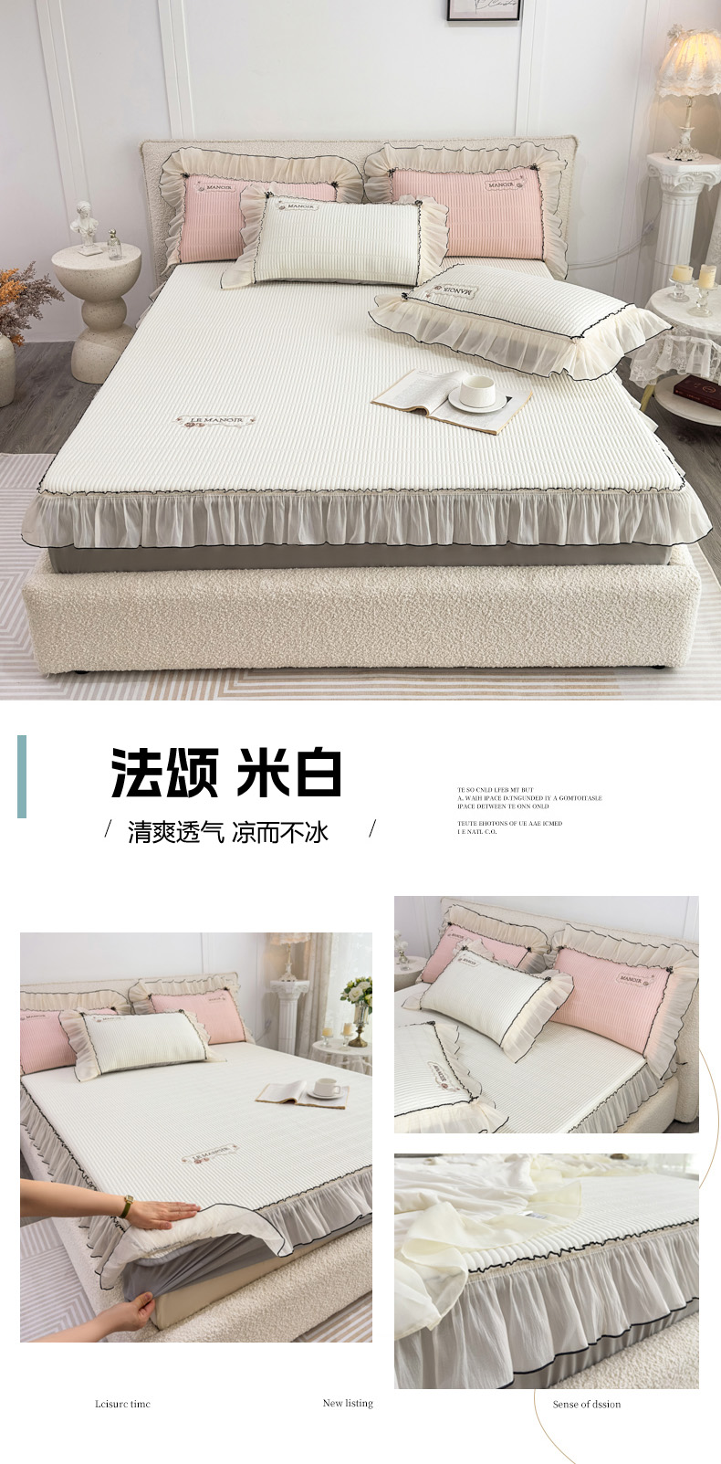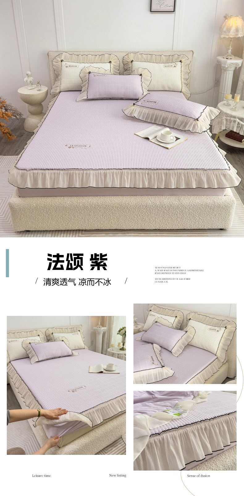 当前位置: 91家纺网 > 商品网购 > 床品套件 > 四件套 > 夏被四件套 > (总)菊上家纺 2026新款法式风PE床笠款凉席夏被夏凉被空调被四件套-法颂
