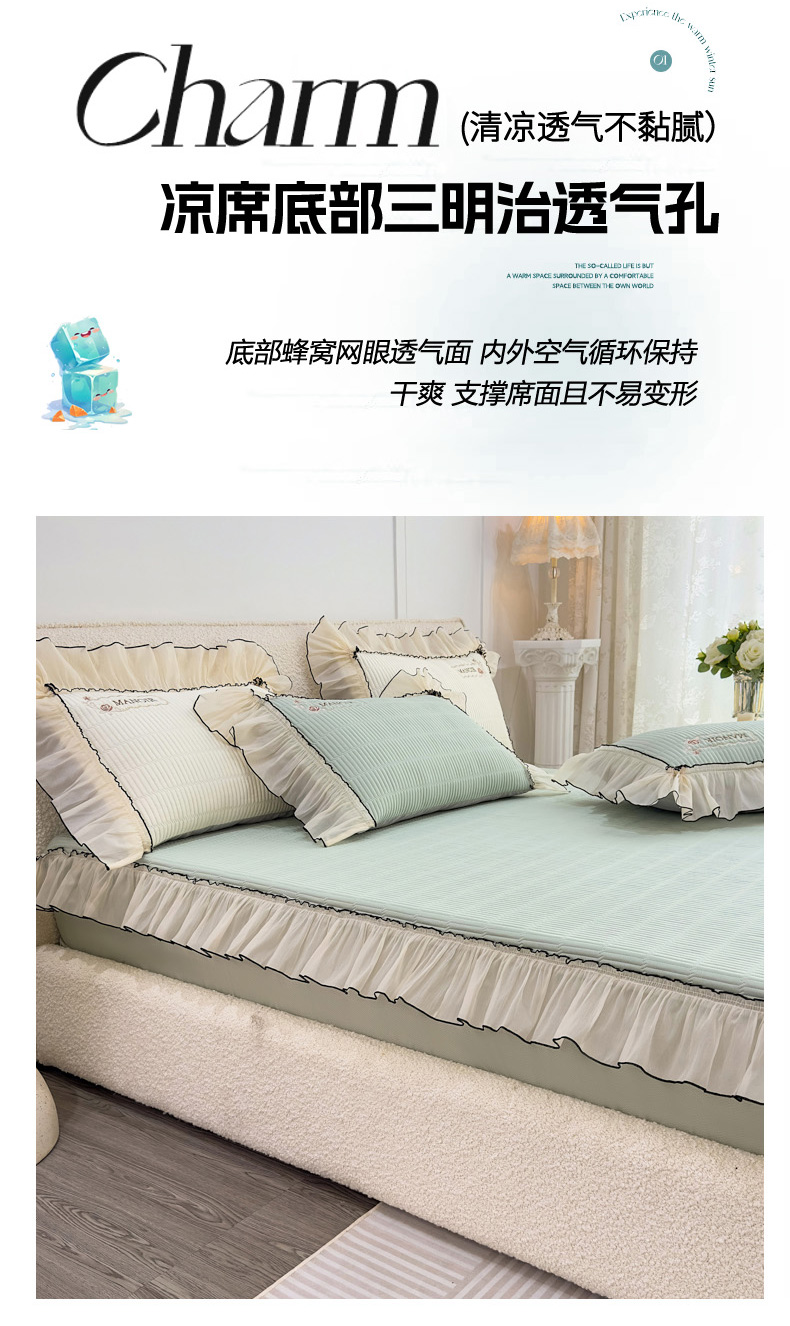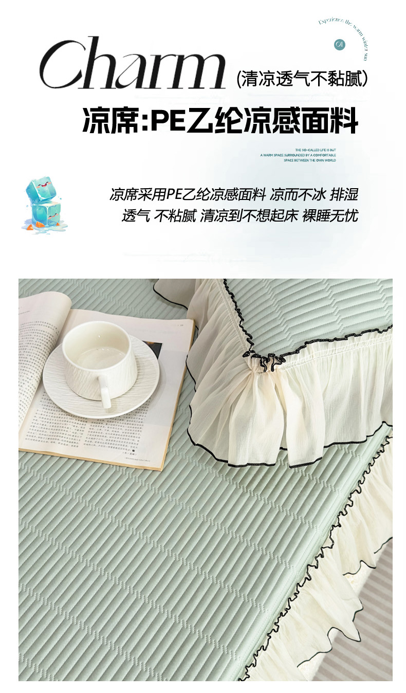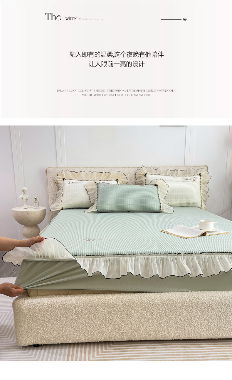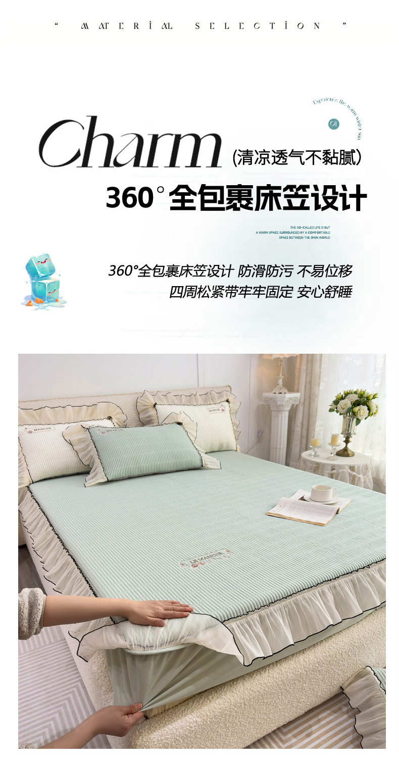 当前位置: 91家纺网 > 商品网购 > 床品套件 > 四件套 > 夏被四件套 > (总)菊上家纺 2026新款法式风PE床笠款凉席夏被夏凉被空调被四件套-法颂