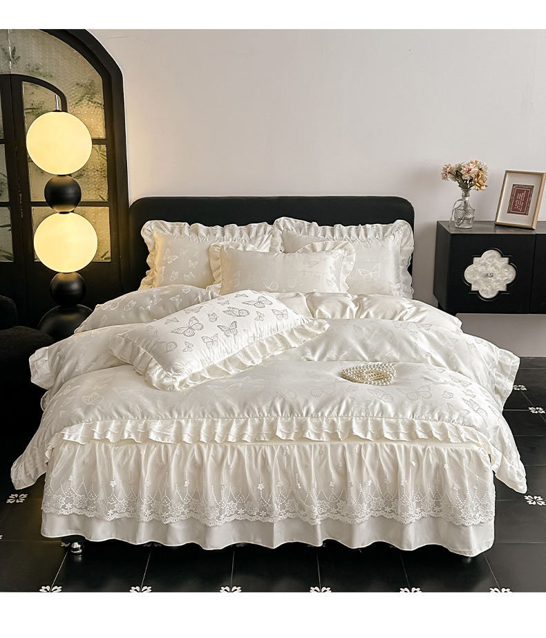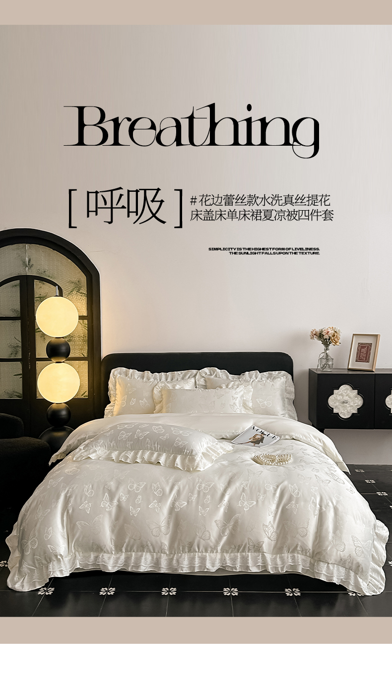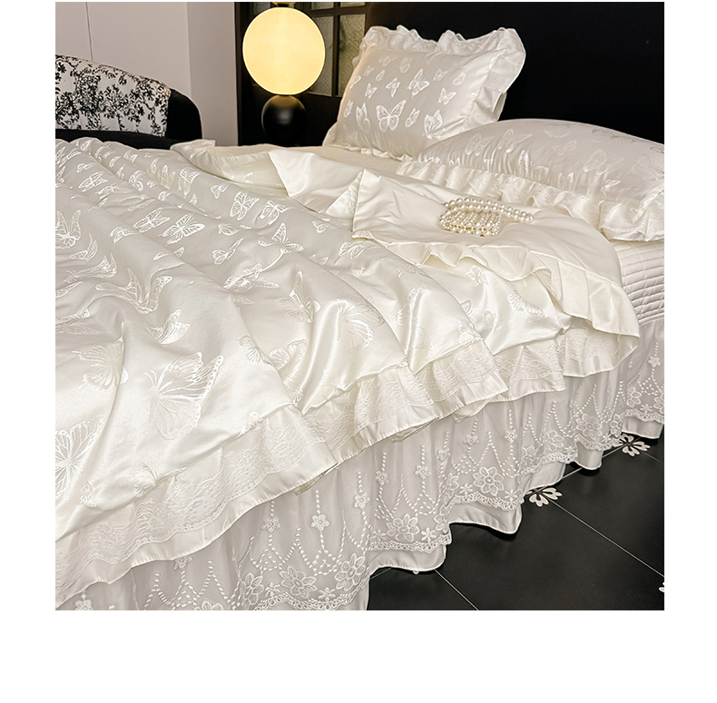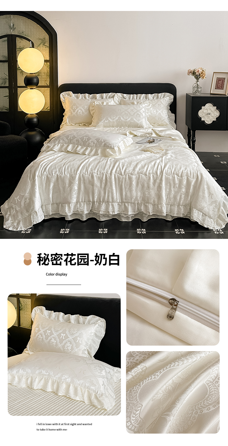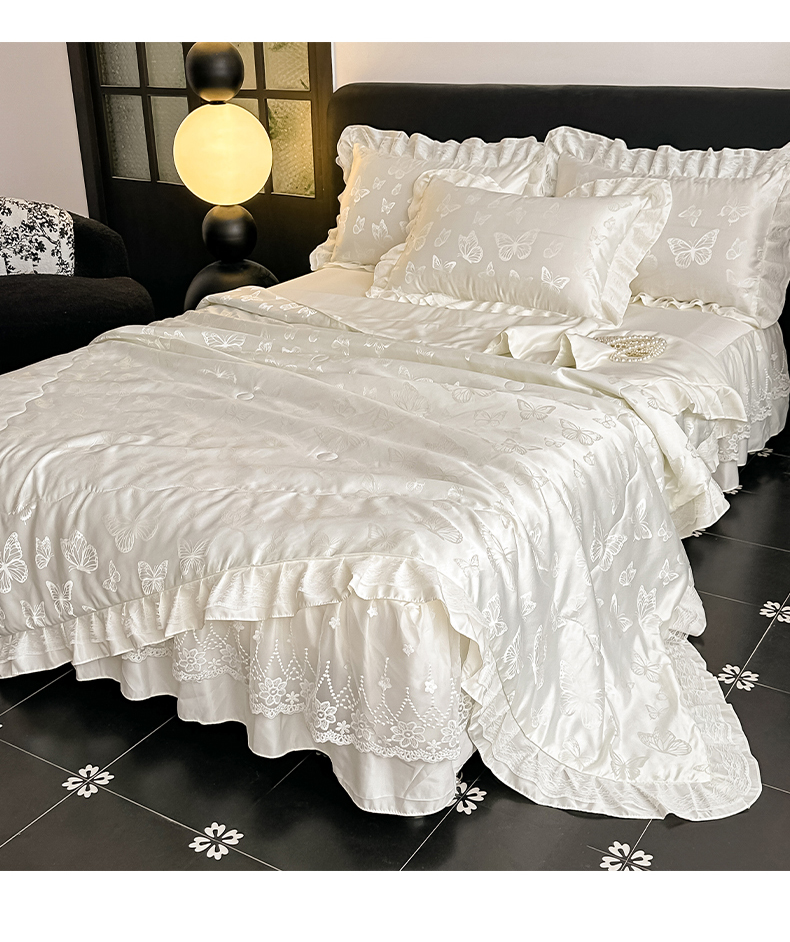 当前位置: 91家纺网 > 商品网购 > 床品套件 > 四件套 > 其它四件套 > 富米莱(原臻工厂) 2026新款花边蕾丝款水洗真丝提花床盖床单床裙夏凉被四件套 秘密花园-蓝色