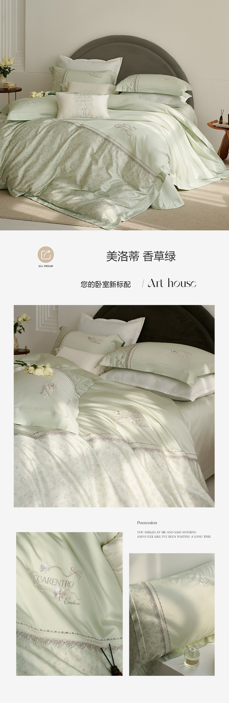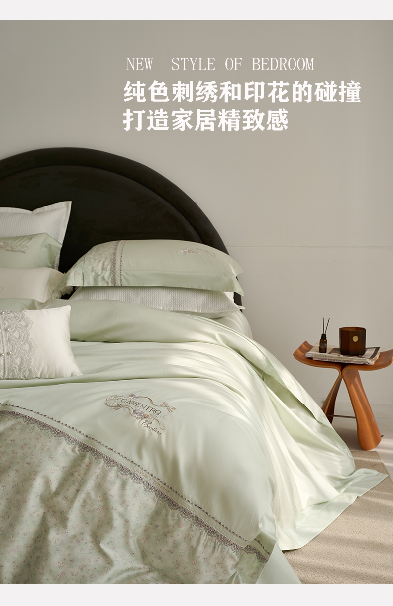 (总)诗黛尔 2026春夏新款 天丝刺绣四件套叶叶生辉系列,清新绿,绅士灰,水晶兰,香槟金,香妃玉,优雅紫