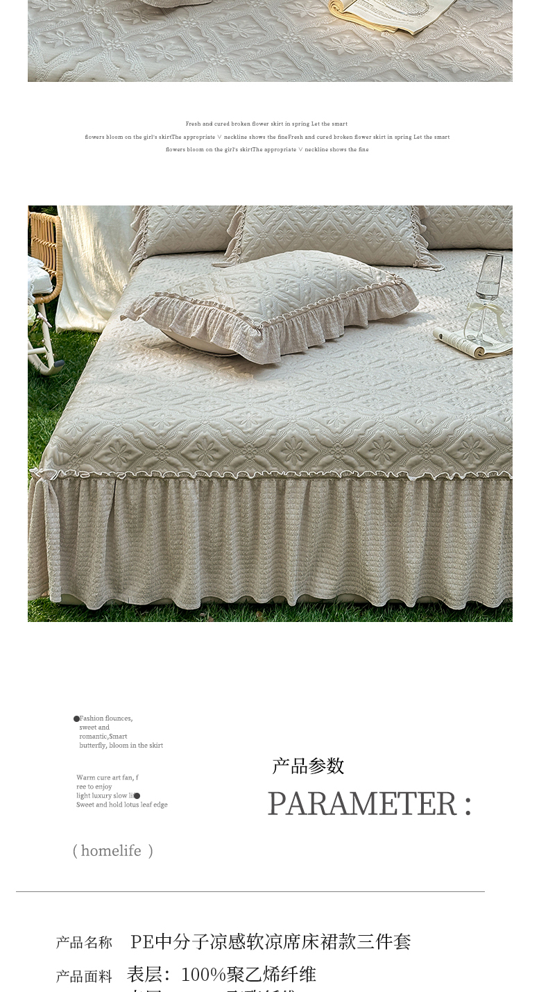 商品名称:乐朵家居 2026新款 蒂梵朵 (复合)凉豆豆 凉席三件套 杏色