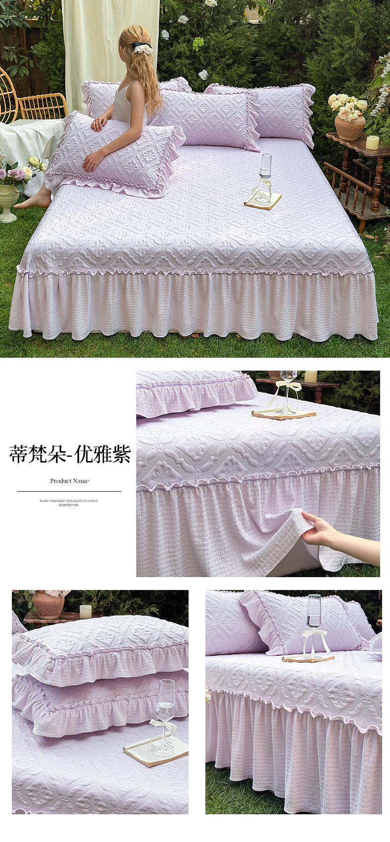 (总)乐朵家居 法派甜心 全棉40水洗棉 夹棉床盖四件套VS床单四件套(床单款控价 288 床盖款控价 338),玉,紫,兰,白,卡其