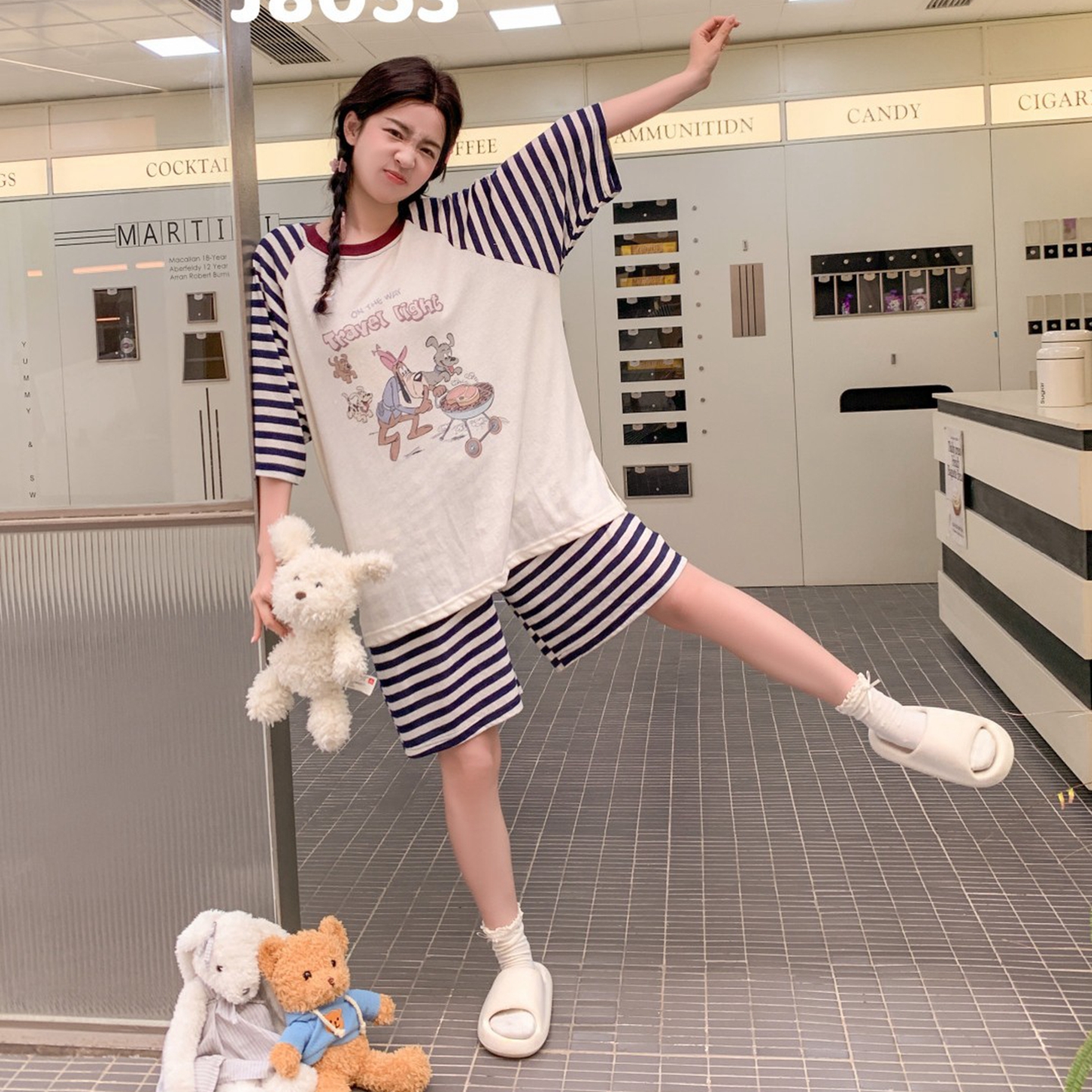 (总)妍景家居生活馆 2026新款针织棉条纹开衫短短家居服,针织棉条纹开衫短短