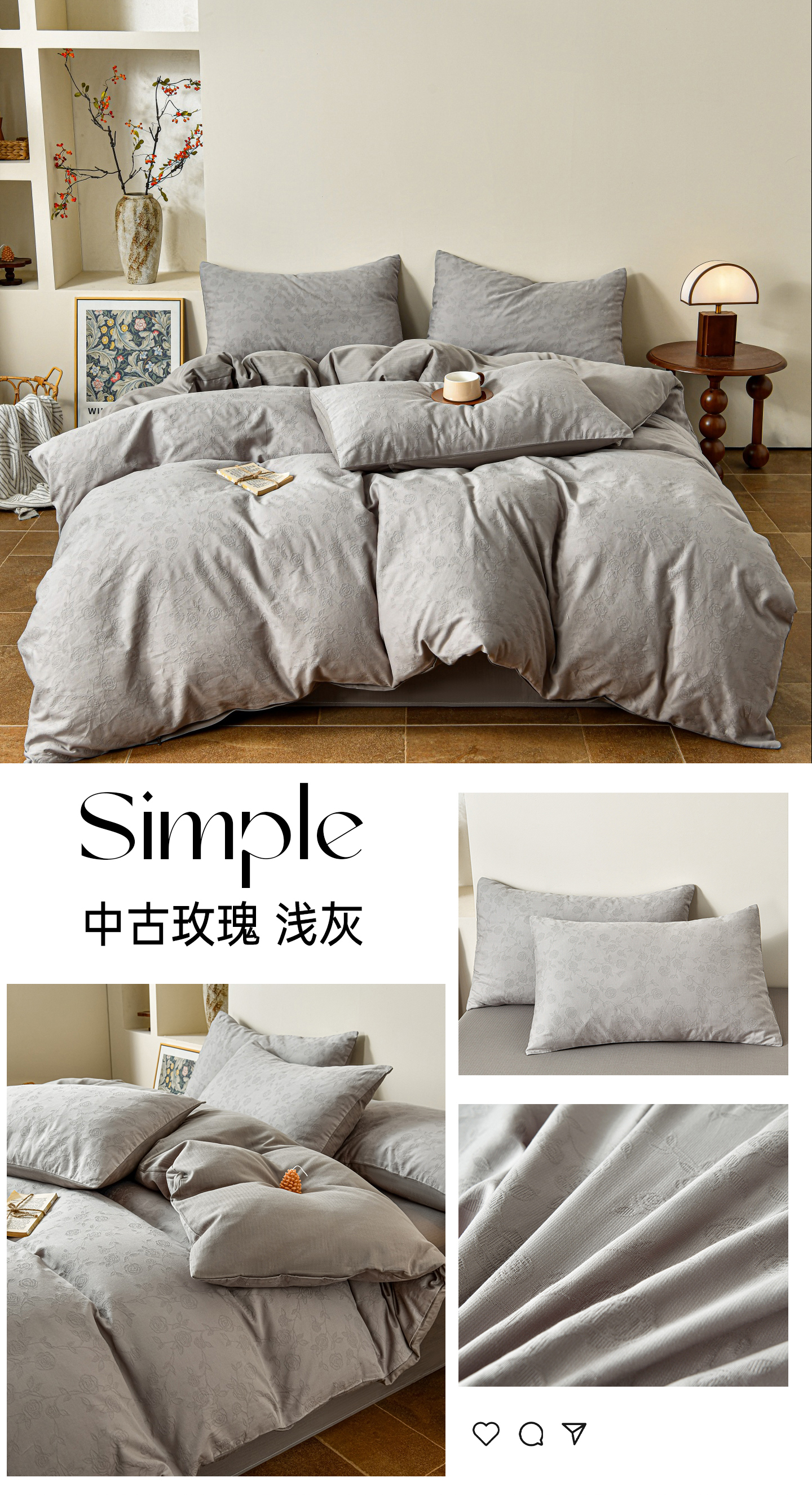 当前位置: 91家纺网 > 商品网购 > 床品套件 > 四件套 > 全棉普通四件套 > (总)菡宝 2026春夏新款全棉纯棉色织提花四件套-中古玫瑰