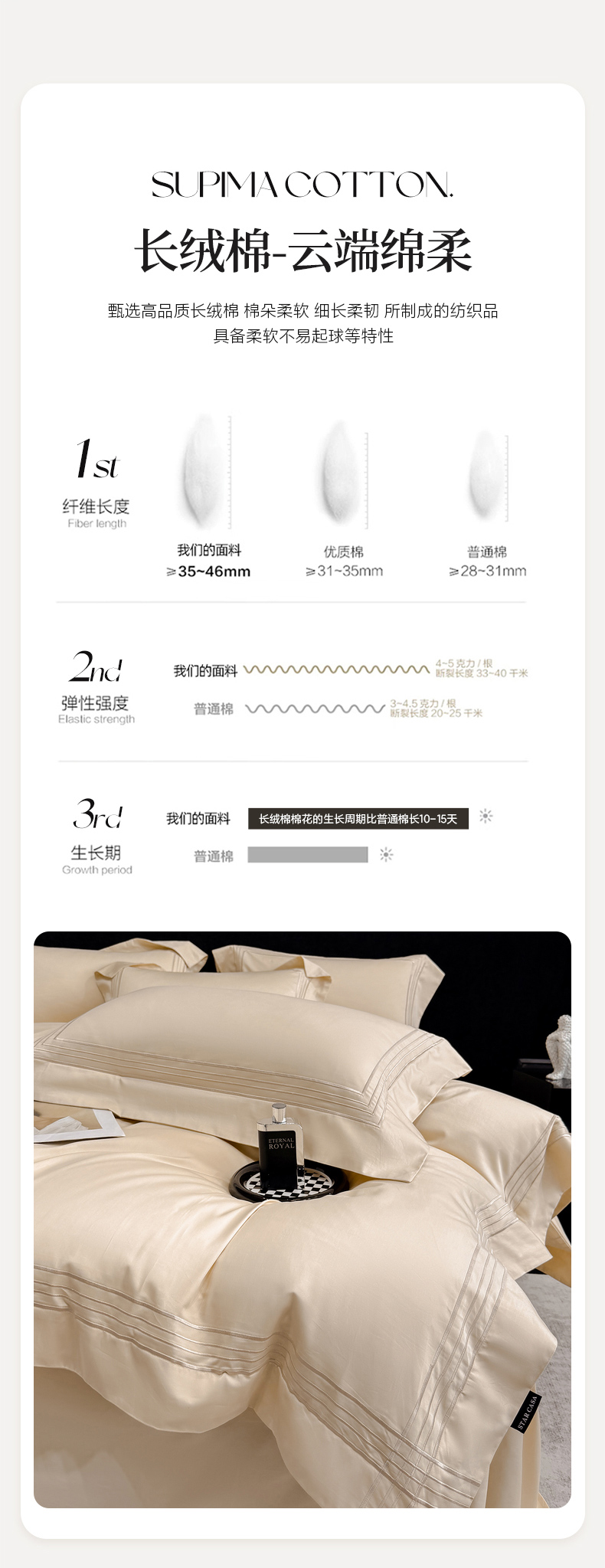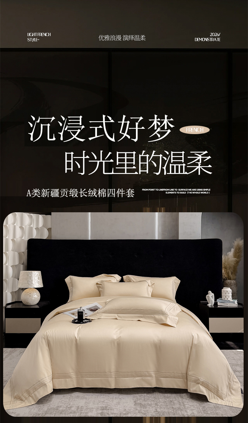当前位置: 91家纺网 > 商品网购 > 床品套件 > 四件套 > 长绒棉四件套 > 星蕴家纺 2026新款贡缎新疆长绒棉四件套-千寻 千寻香槟金