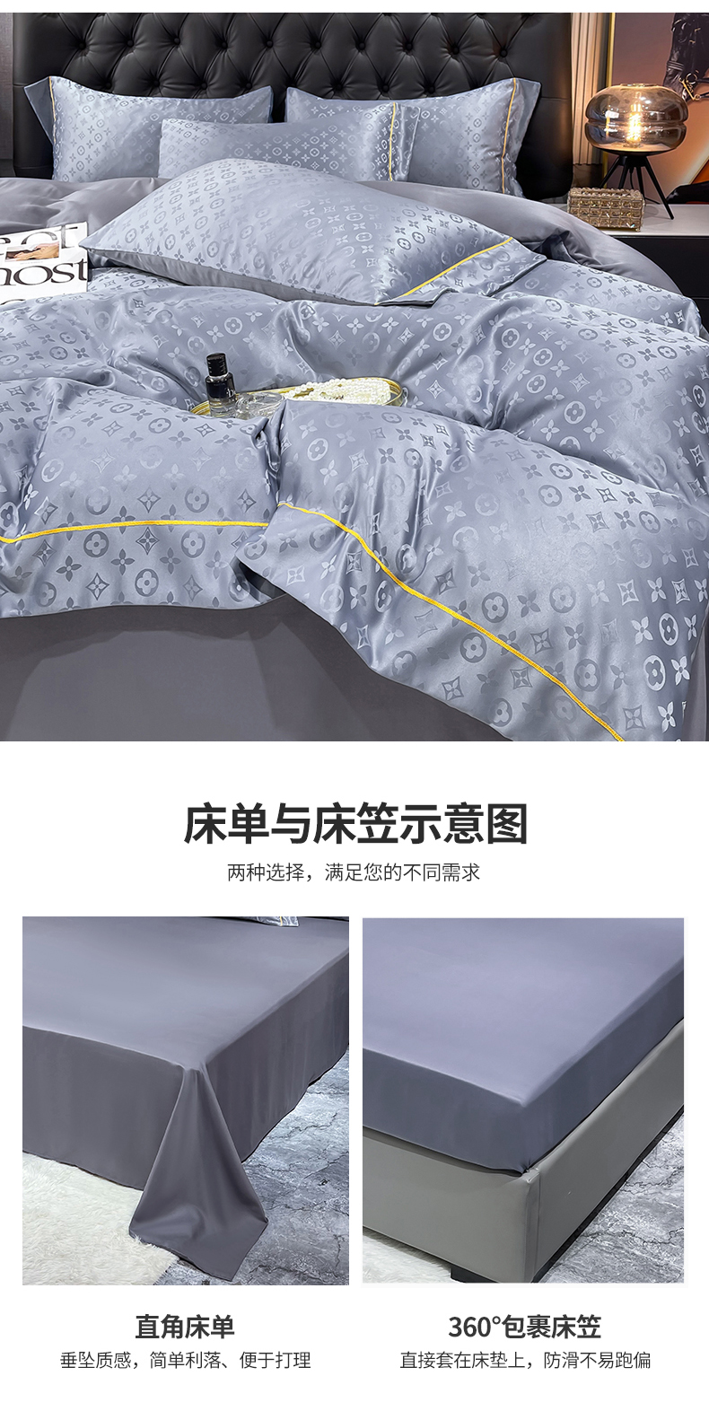 (总) 新25 经年2025年 水洗真丝冰丝天丝提花四件套直播爆款 格林系列 ,格林-宝蓝,格林-粉玉,格林-浅灰,格林-天蓝,格林-香槟
