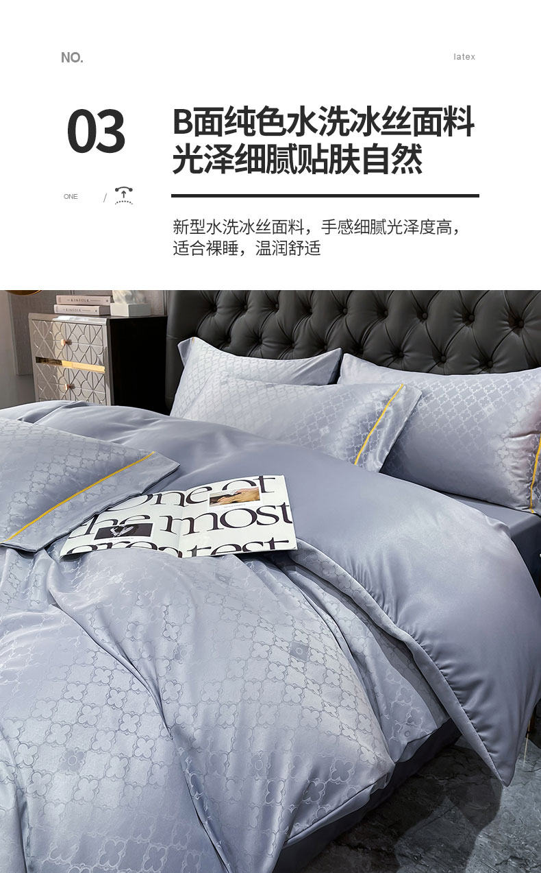 当前位置: 91家纺网 > 商品网购 > 床品套件 > 四件套 > 其它四件套 > 经年 2026新款60S贡缎提花水洗真丝四件套 香瑾-石灰