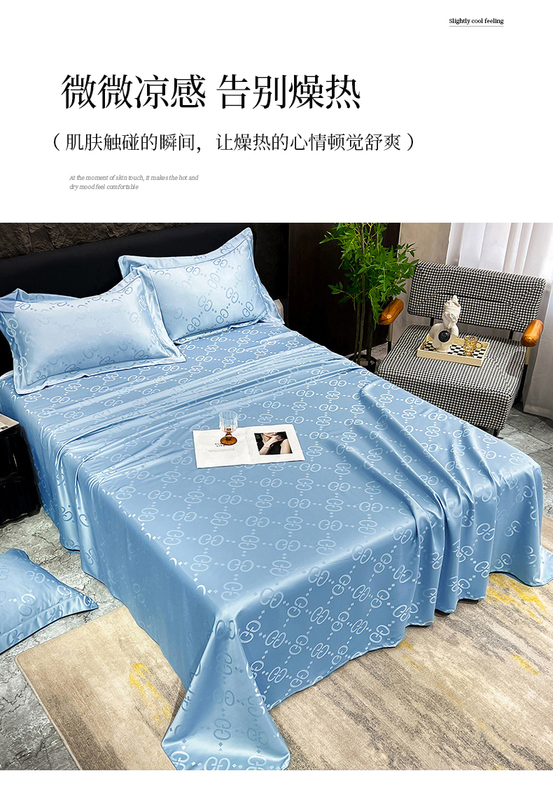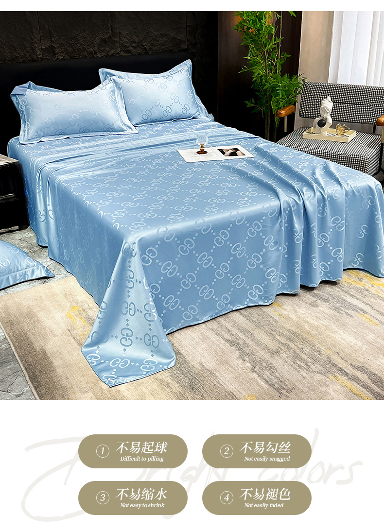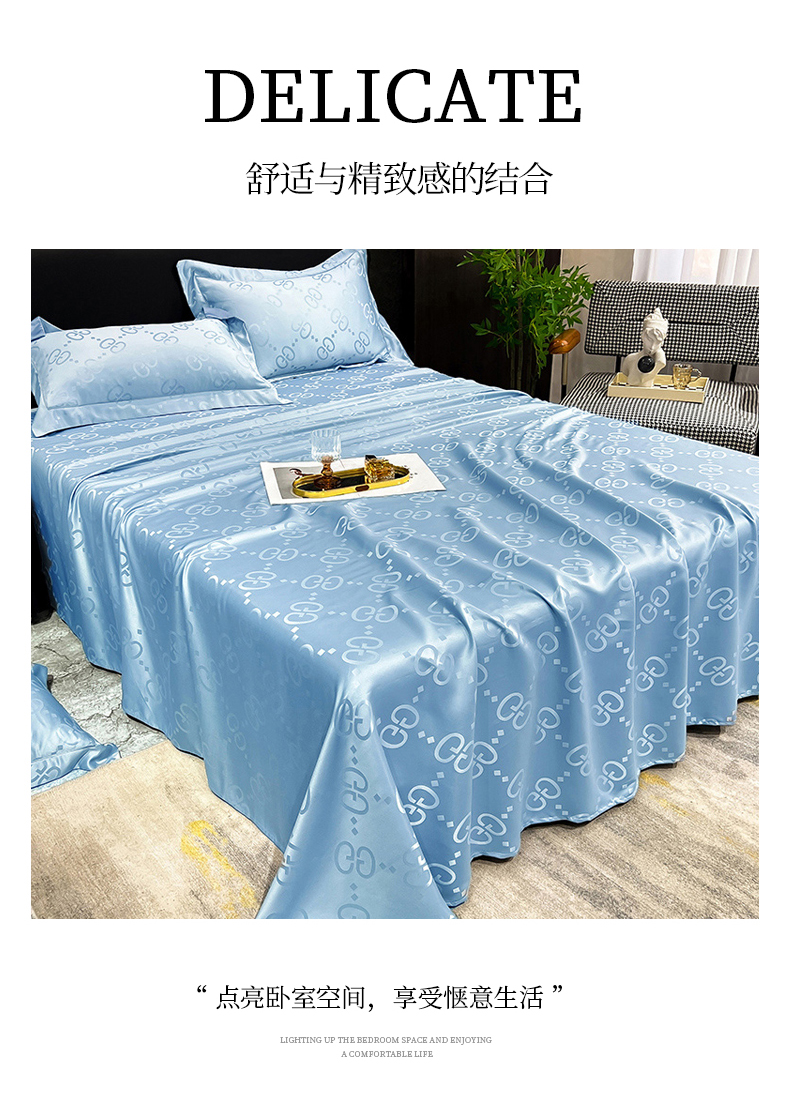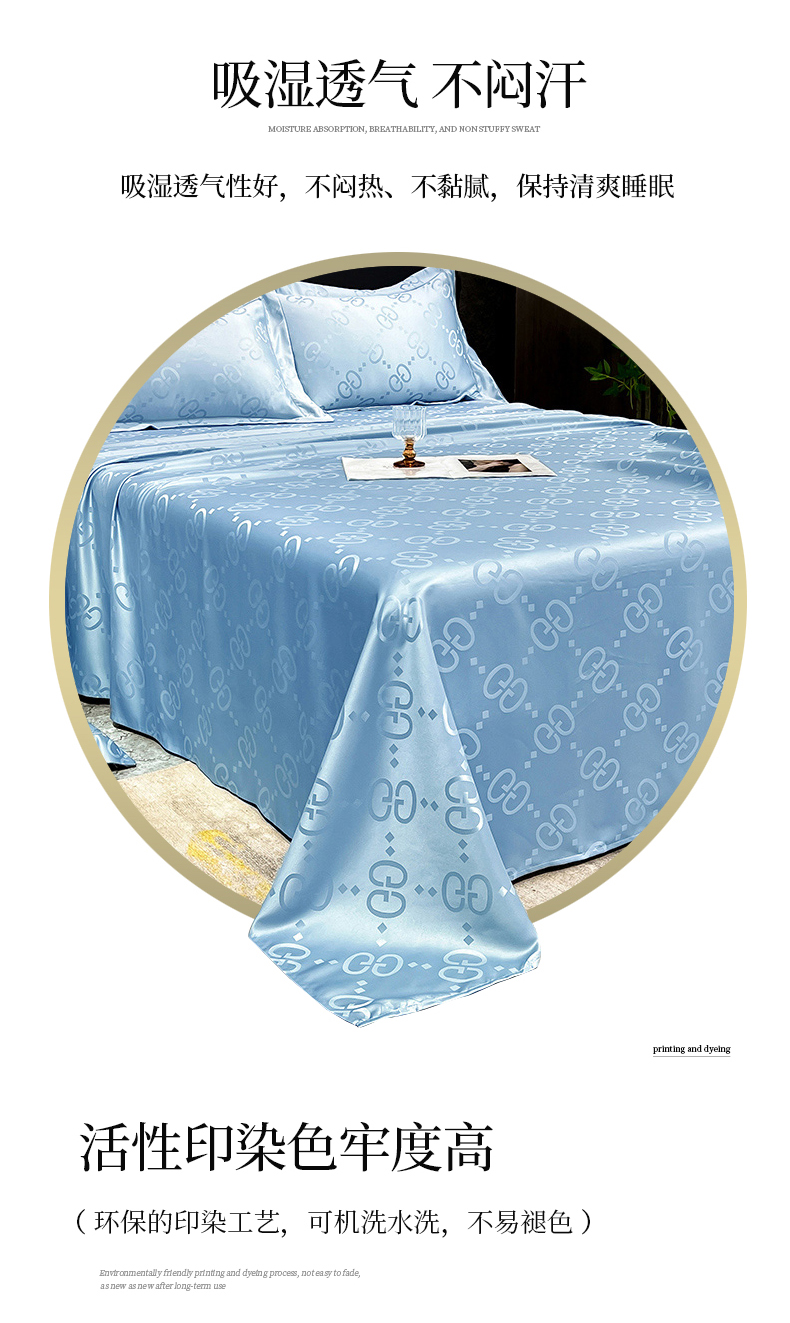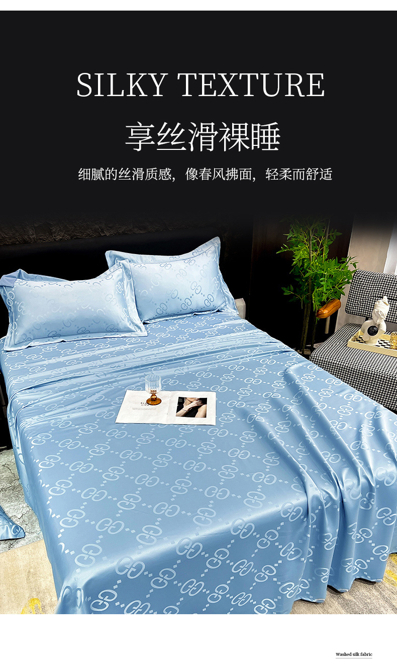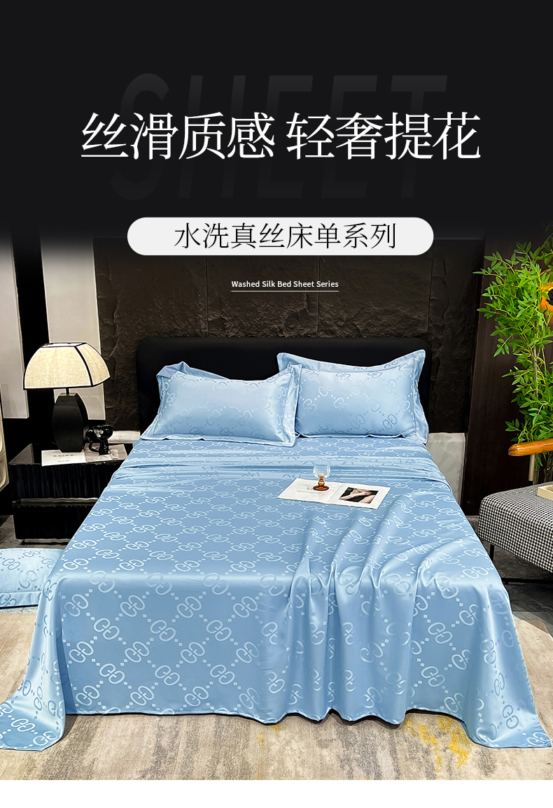 商品名称:经年 2026新款水洗真丝提花床单单床单床单单件 洛克-天蓝