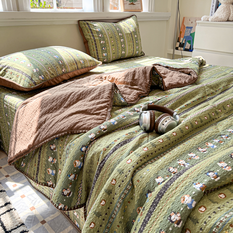 (总)梵希雅 2026新款A类贝壳秀费尔岛风泡芙棉夏被空调被四件套,红棕萌犬-夏被,焦糖木马-夏被,甜粉摇马-夏被,雾蓝自由马-夏被,棕蓝麋鹿-夏被