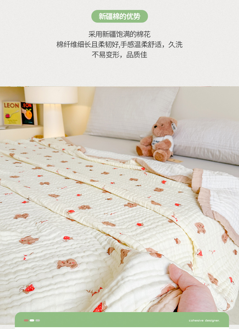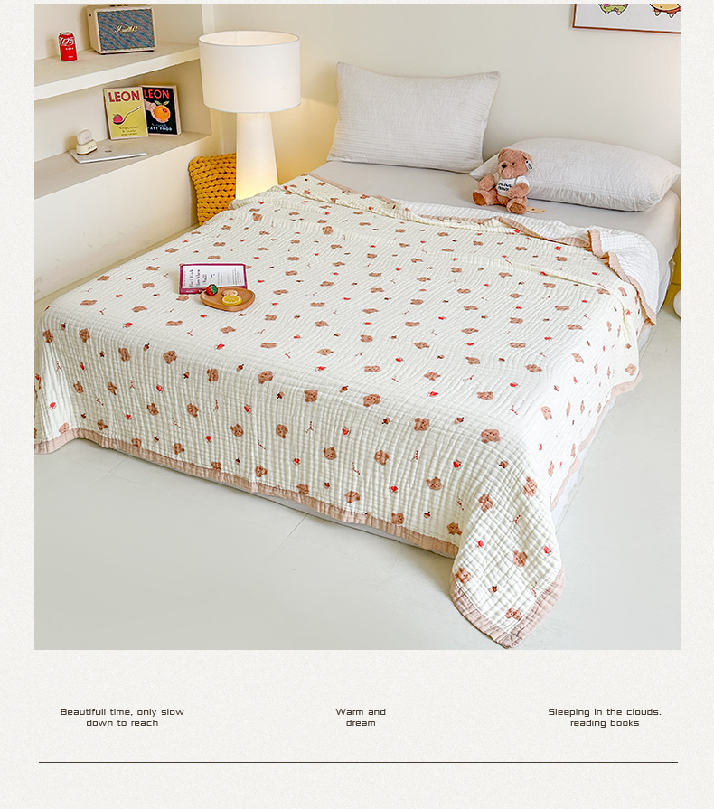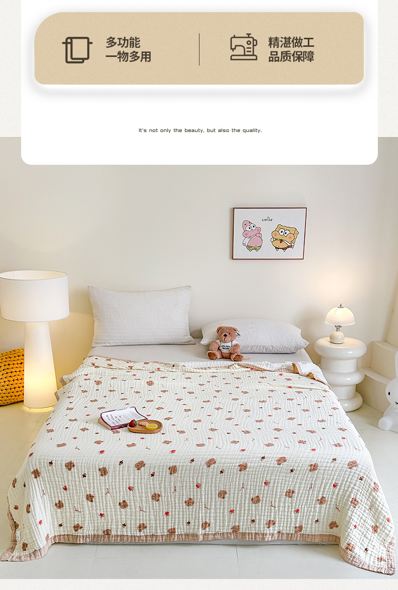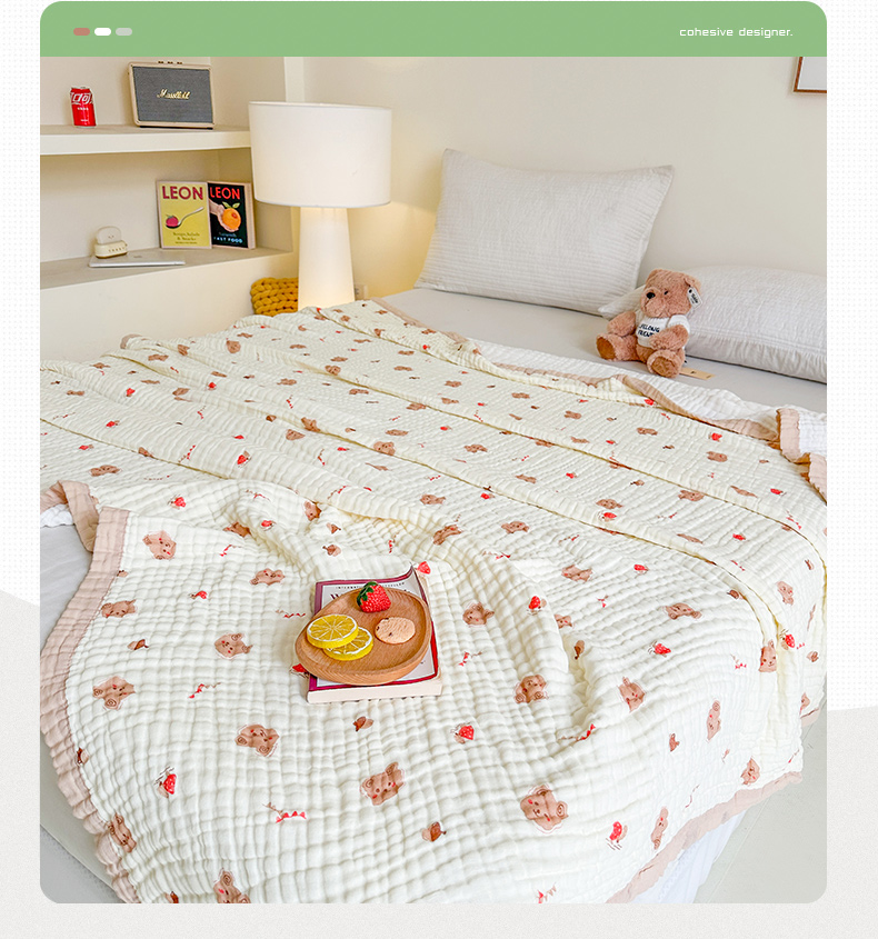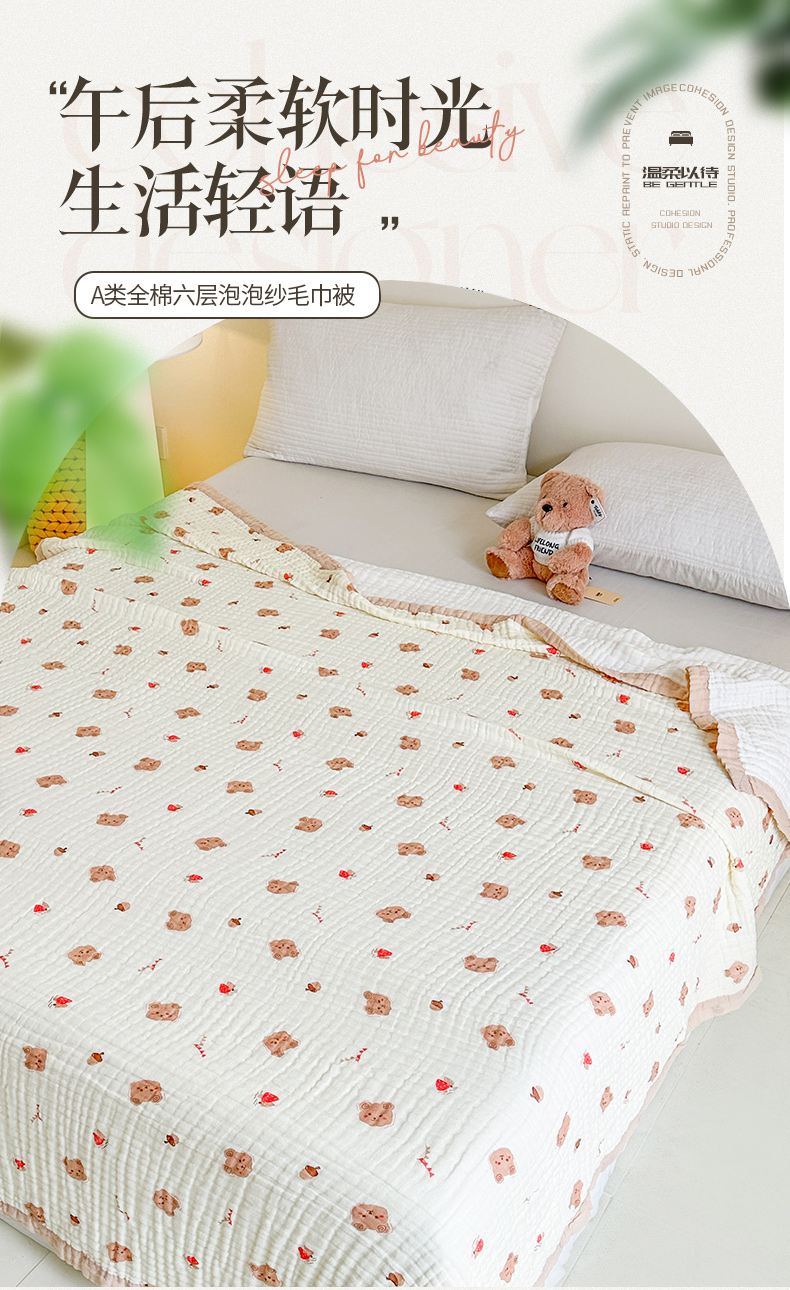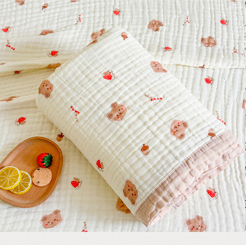 商品名称:慕婷家纺 2026新款婴儿纱布浴巾浴巾全棉六层纱布泡泡纱布毛巾被 松果小熊