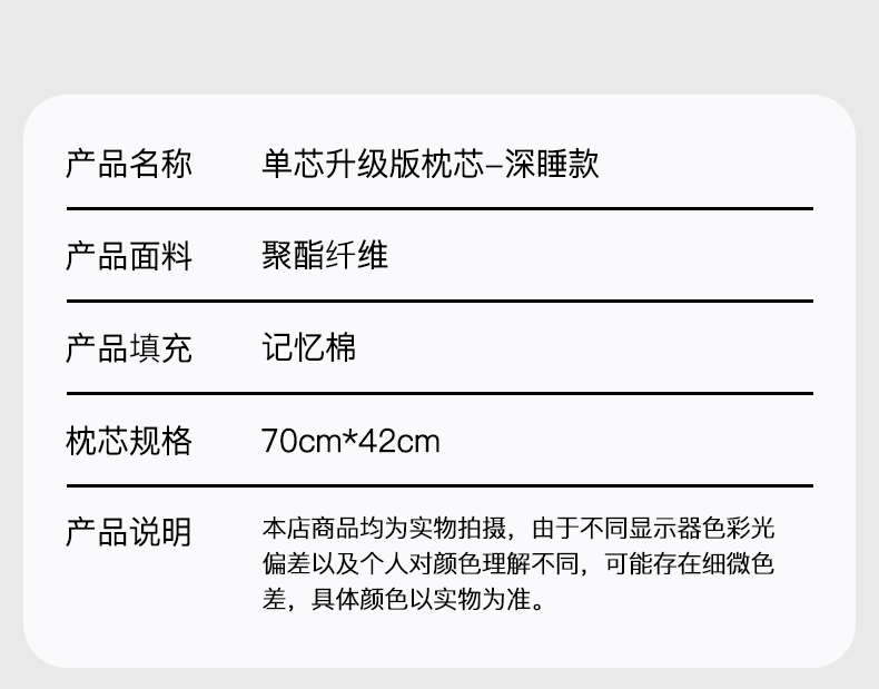 商品名称:(总)唯爱品 2026新款大白记忆枕单芯升级款酒店款40D记忆绵枕头枕芯