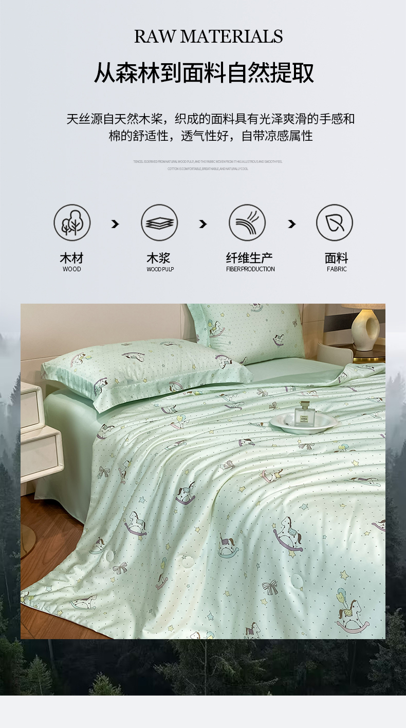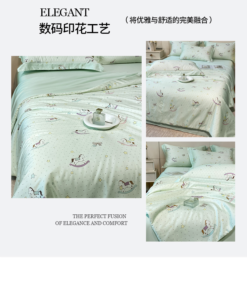 当前位置: 91家纺网 > 商品网购 > 床品套件 > 四件套 > 其它四件套 > (总)新方向 2026数码印花A类20%蚕丝天丝棉夏被四件套 65%60s兰精天丝 35%100支长绒棉-欢乐马