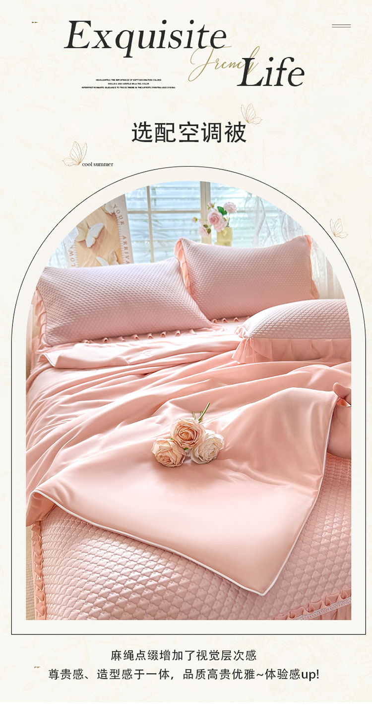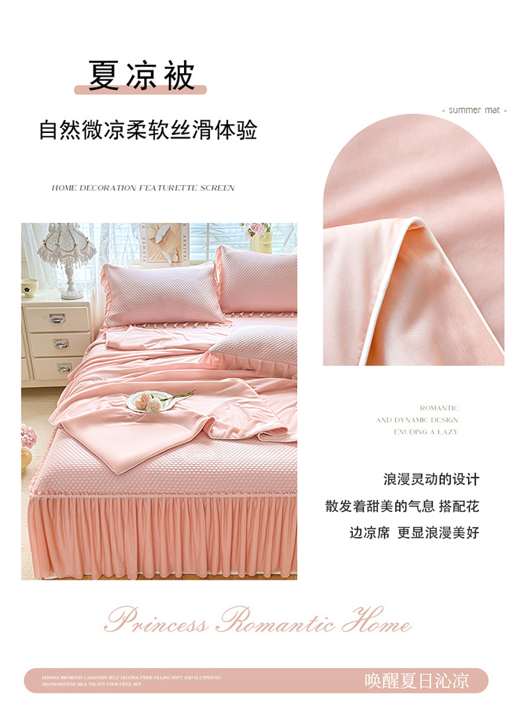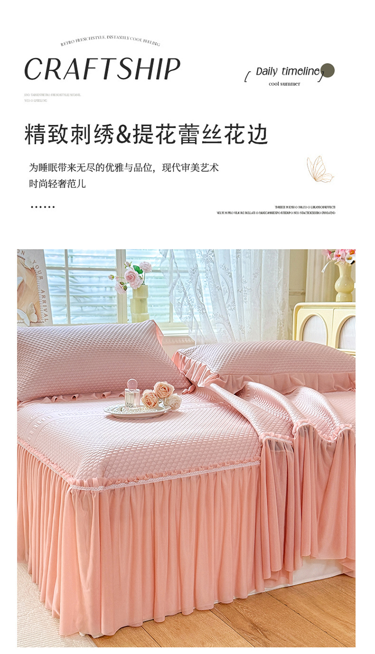 当前位置: 91家纺网 > 商品网购 > 床品套件 > 四件套 > 夏被四件套 > (总)苏米娜家纺SUMINA 2026新款高克重泡泡席乙纶中分子冰豆豆蕾丝床裙夏季冰丝软席夏被四件套-minmin