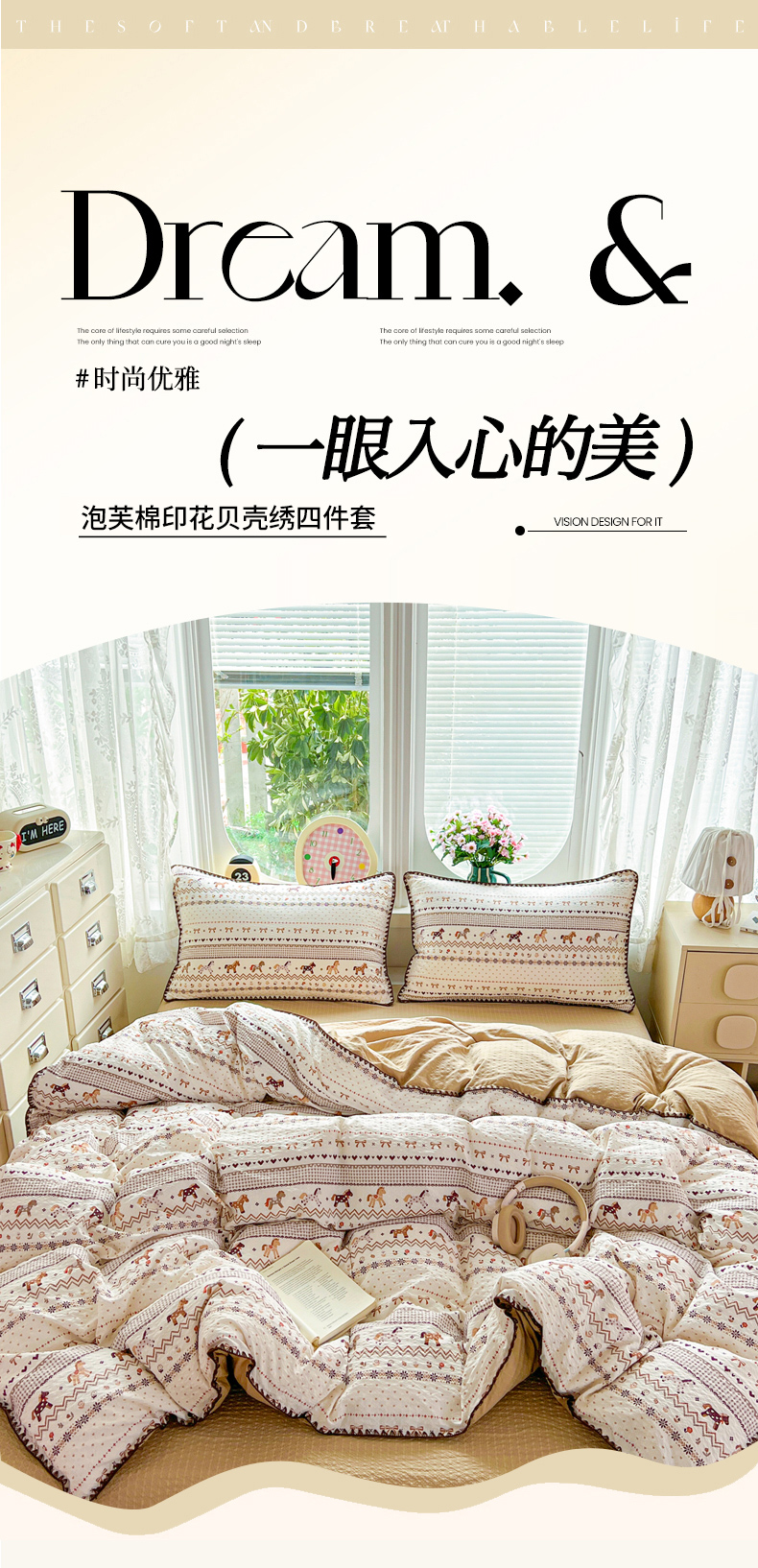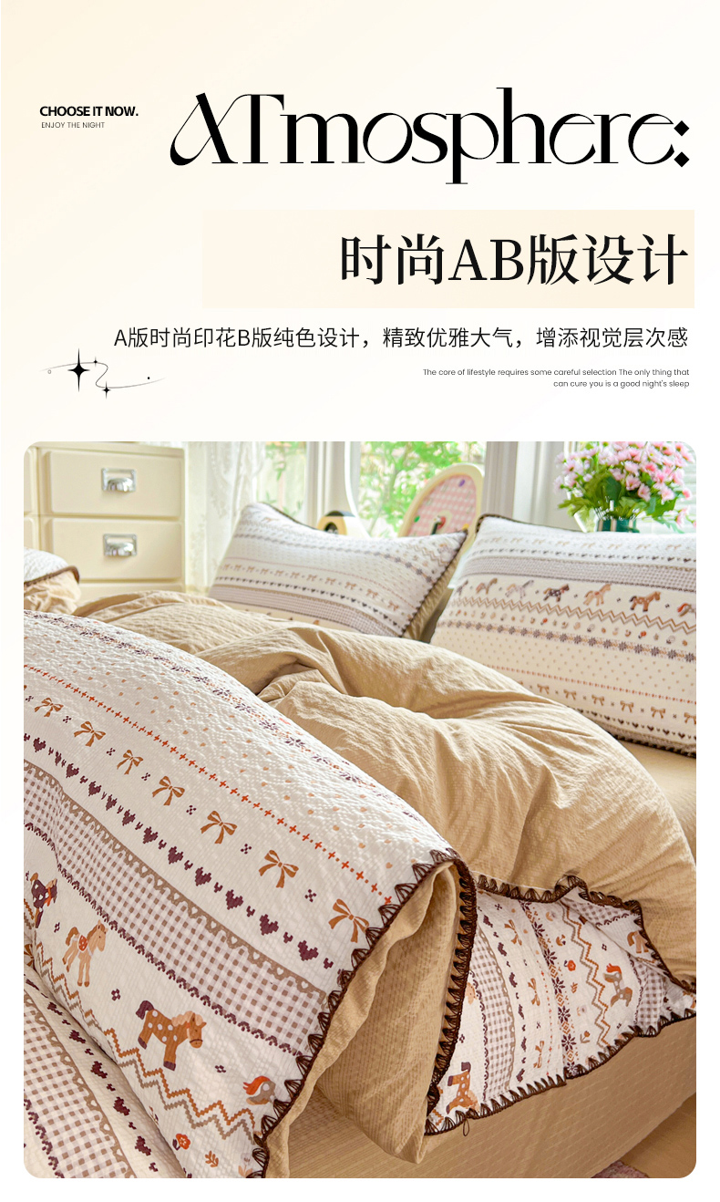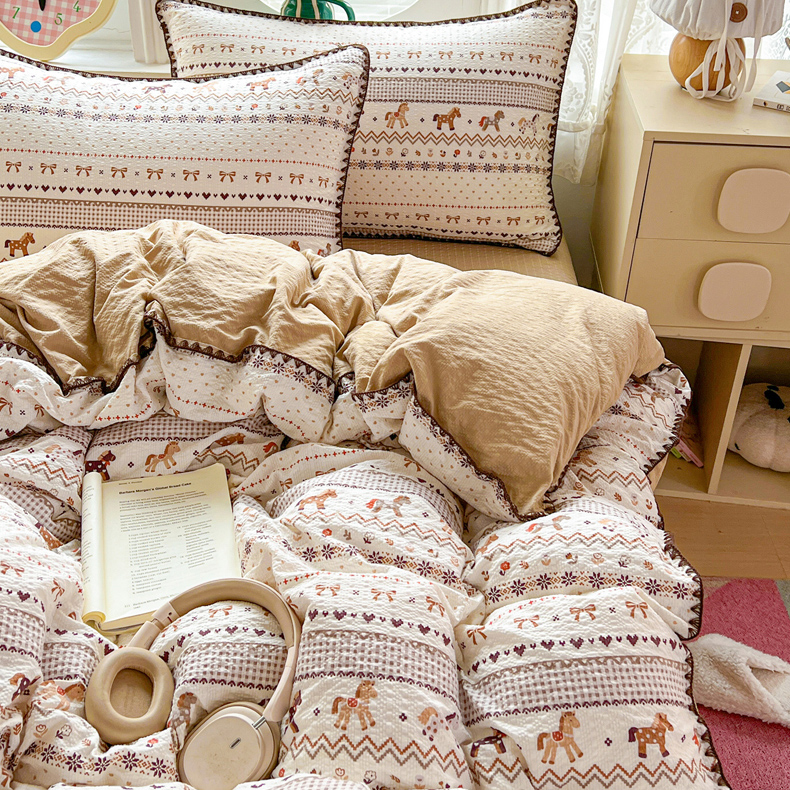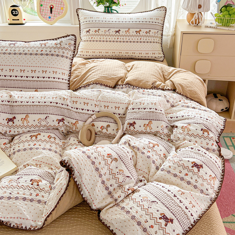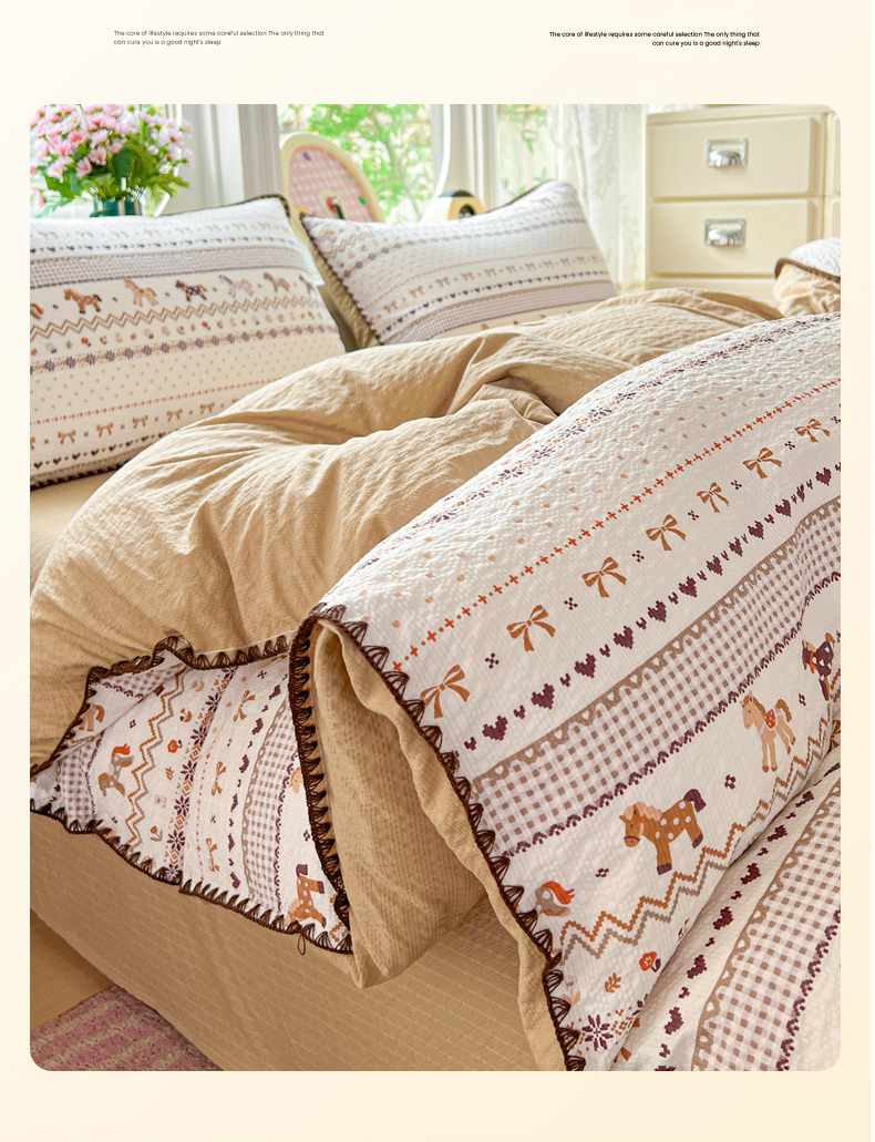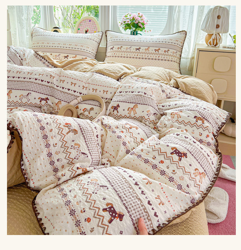 当前位置: 91家纺网 > 商品网购 > 床品套件 > 四件套 > 其它四件套 > 恒尚居 2026新款泡芙纱四件套贝壳绣边床盖套件单被套床单床笠 【小马奔腾】贝壳边