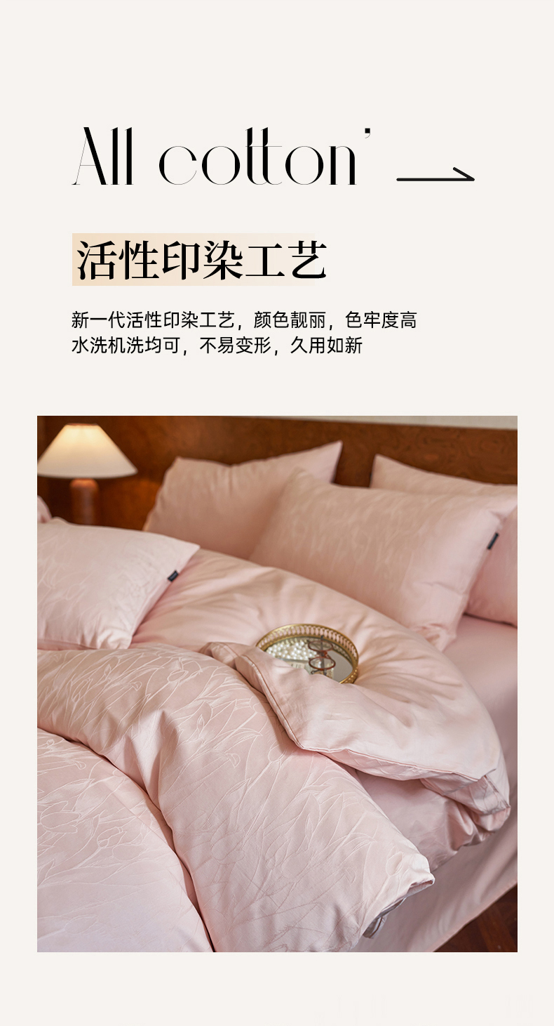 当前位置: 91家纺网 > 商品网购 > 床品套件 > 四件套 > 长绒棉四件套 > 亿梵家居 2026新款100支长绒棉纯棉厚织大提花四件套 芊芊花语-海棠粉