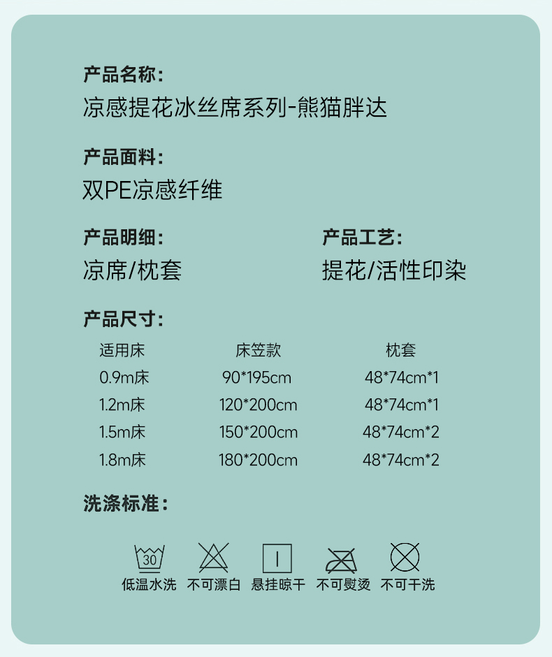 商品名称:(总)小牛席业 2026新款胖达凉感提花冰丝席席子凉席-床笠款
