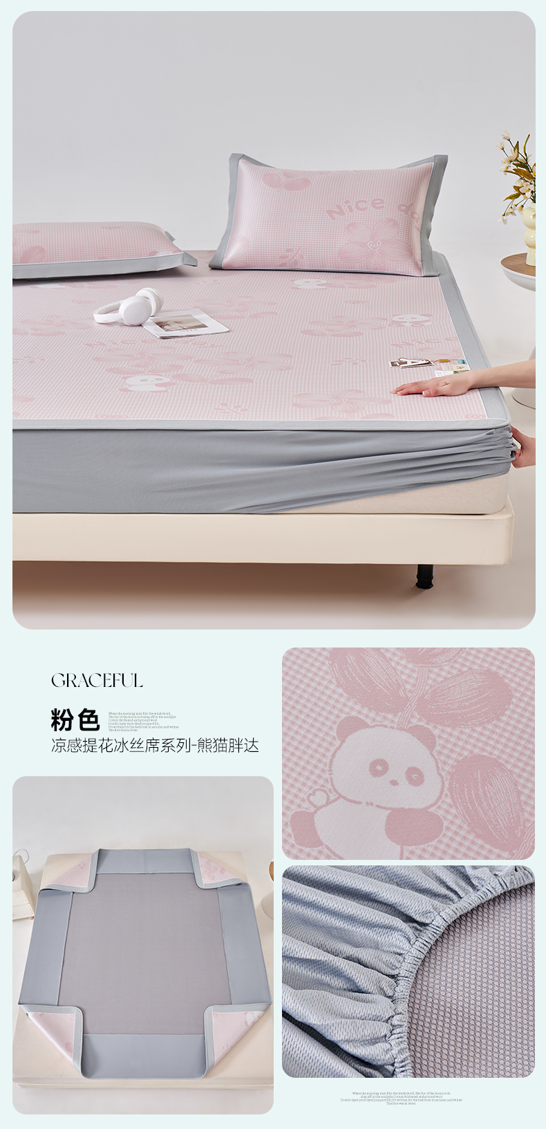 (总)小牛席业 2026新款胖达凉感提花冰丝席席子凉席-床笠款