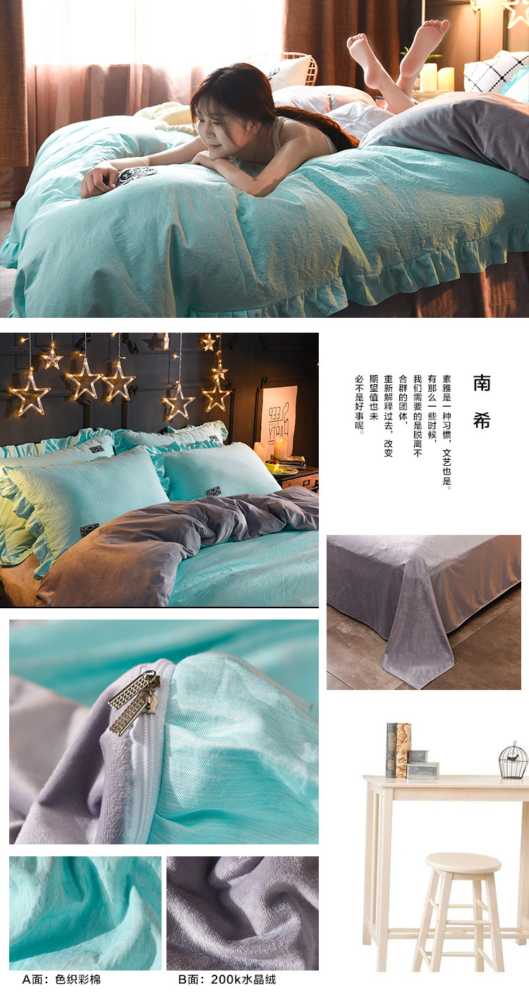 (总)芃成家纺 韩版水洗彩棉水晶绒