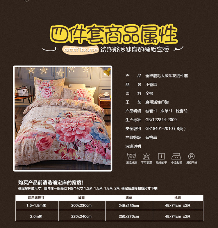 商品名称:芃成家纺 2017平网全棉四件套 小香风