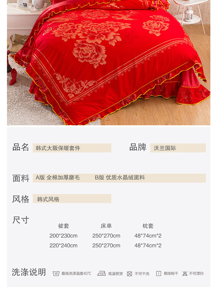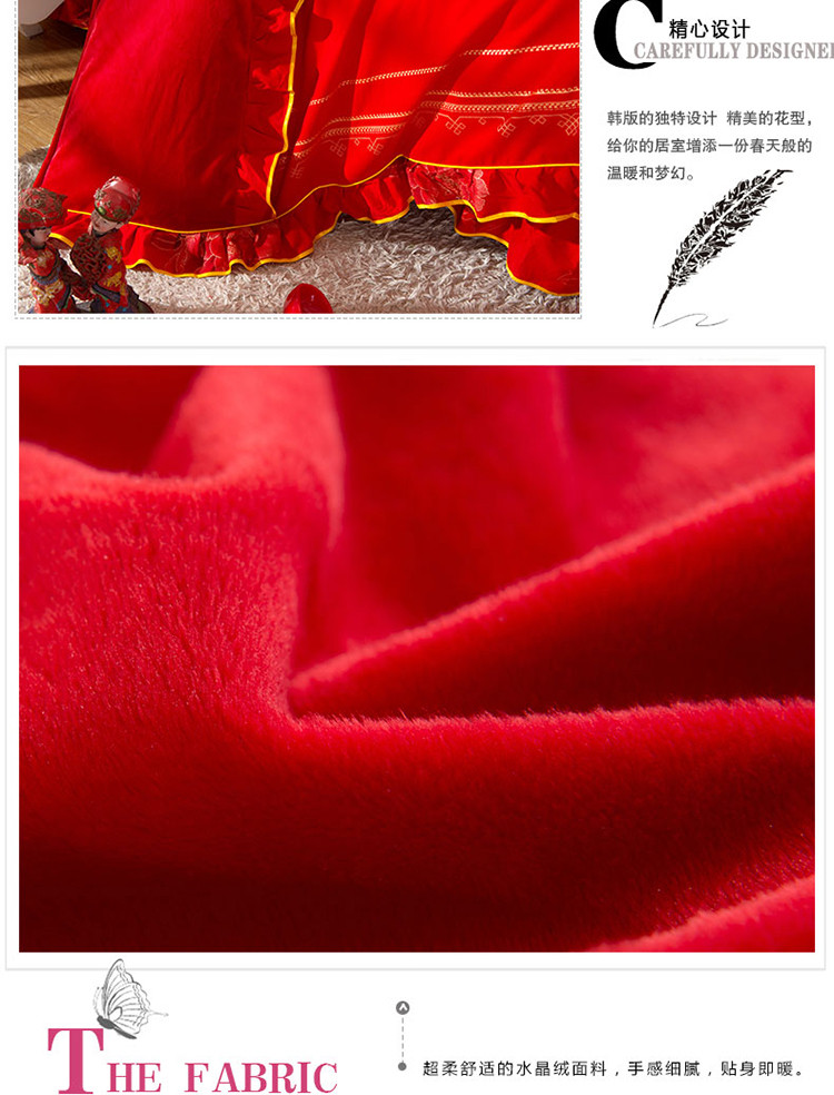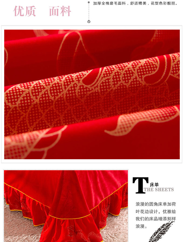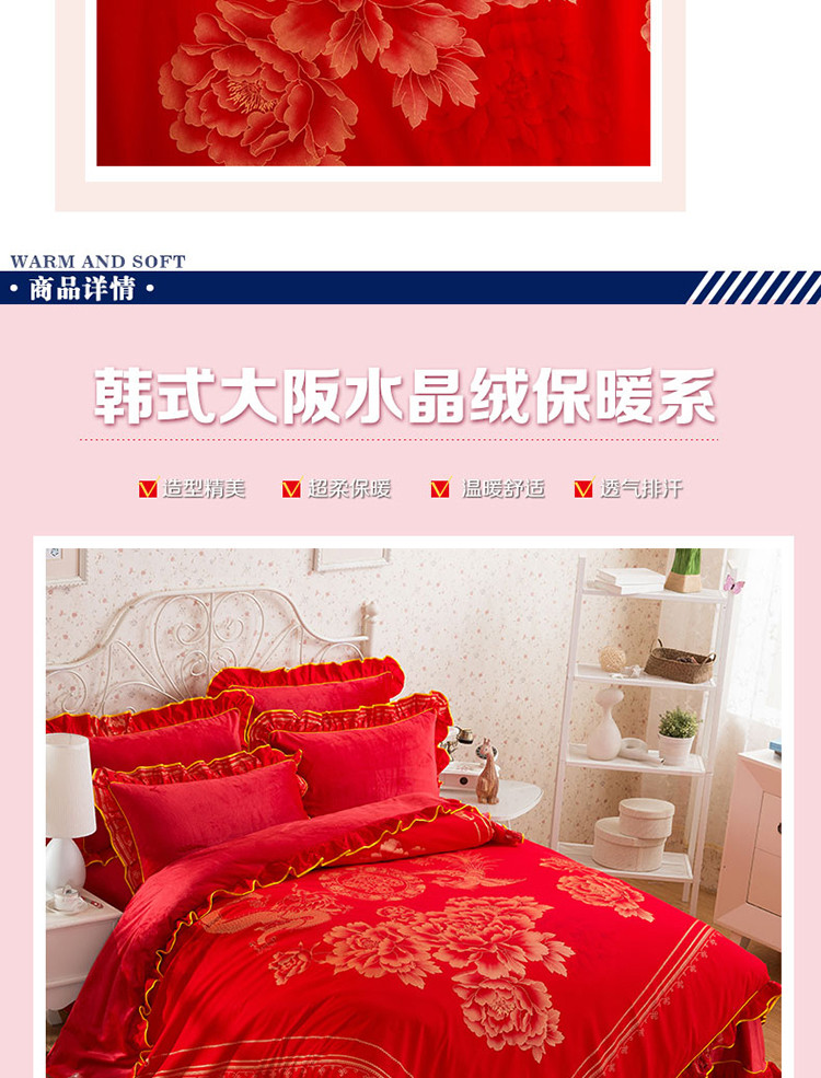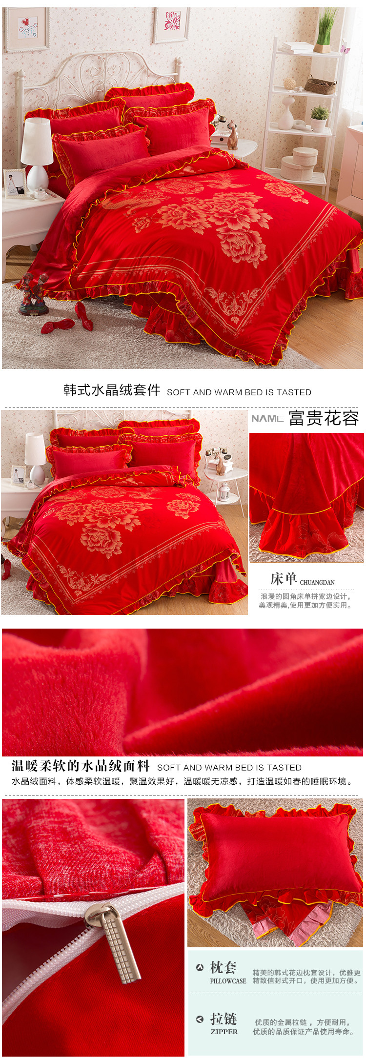 商品名称:意尚风情 0920 韩版磨毛加厚 水晶绒四件套富贵花容