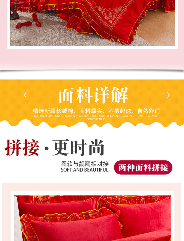 (总)意尚风情2022新款床裙款水貂绒水晶绒长毛绒四件套,纯白,大红,典雅粉,豆沙,湖蓝,亮黄,米黄,深粉红