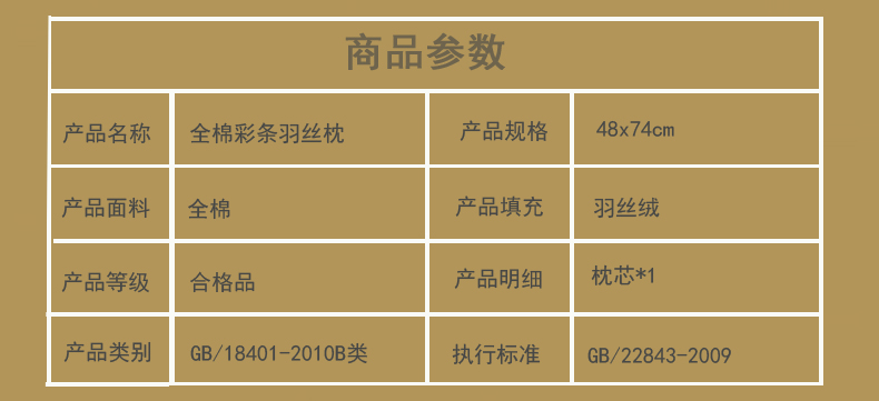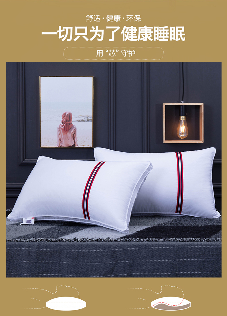 商品名称:兴丝露枕芯 全棉彩条羽丝绒枕 全棉羽丝枕 立体枕
