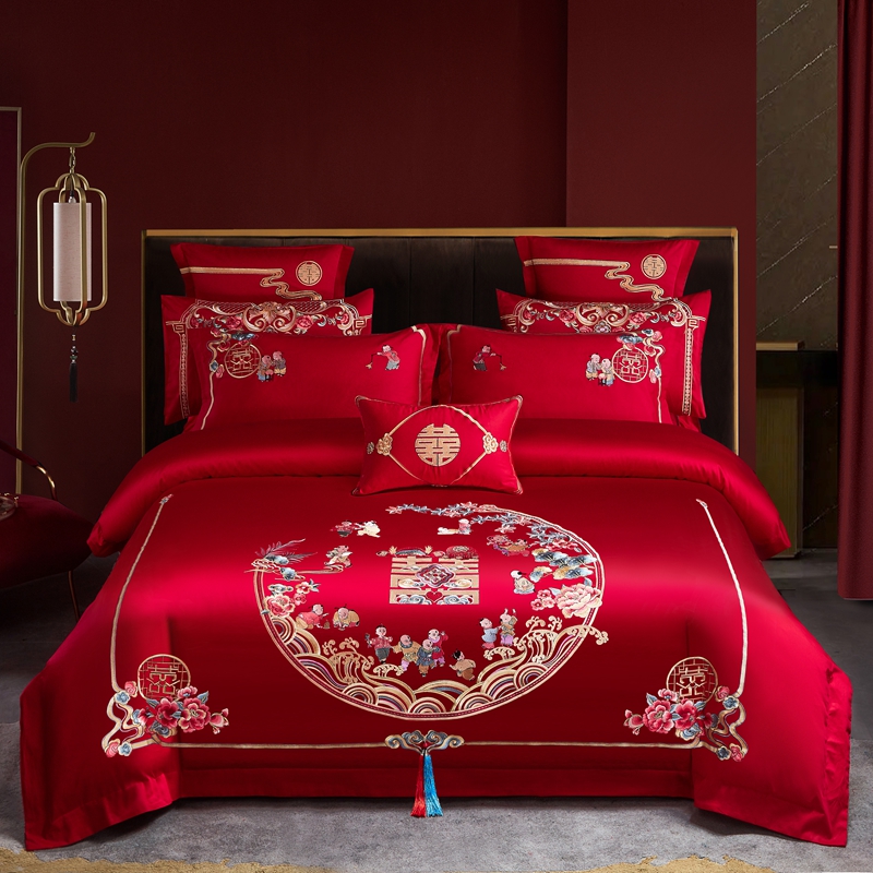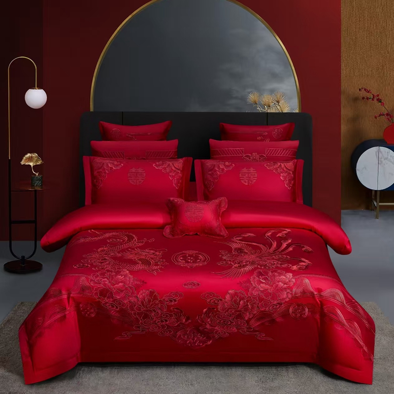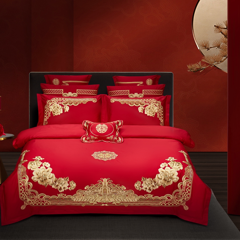 (总)布乐意 2025新款全棉长绒棉贡缎提花全工艺喷气重工新中式绣花大红婚庆四件套多件套直播