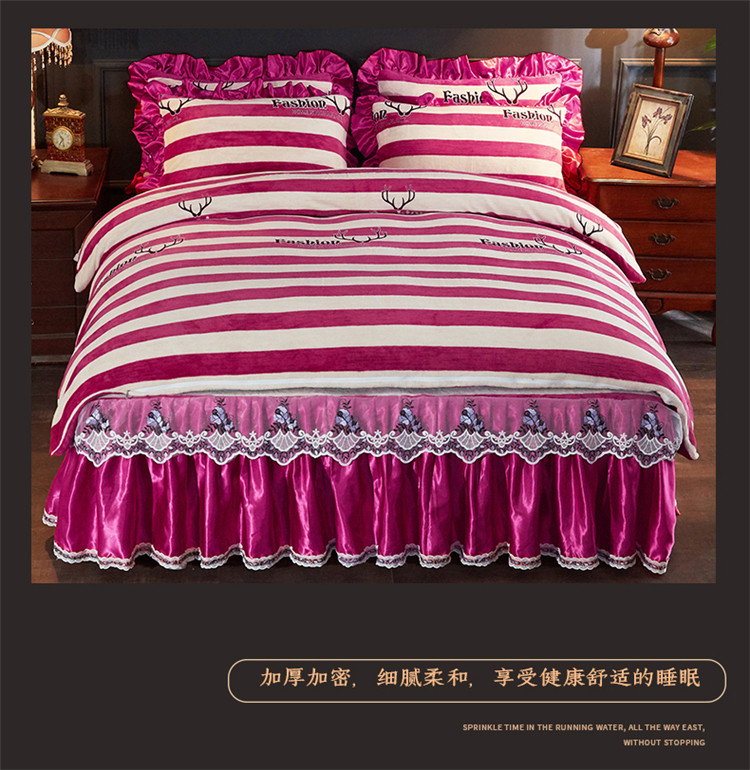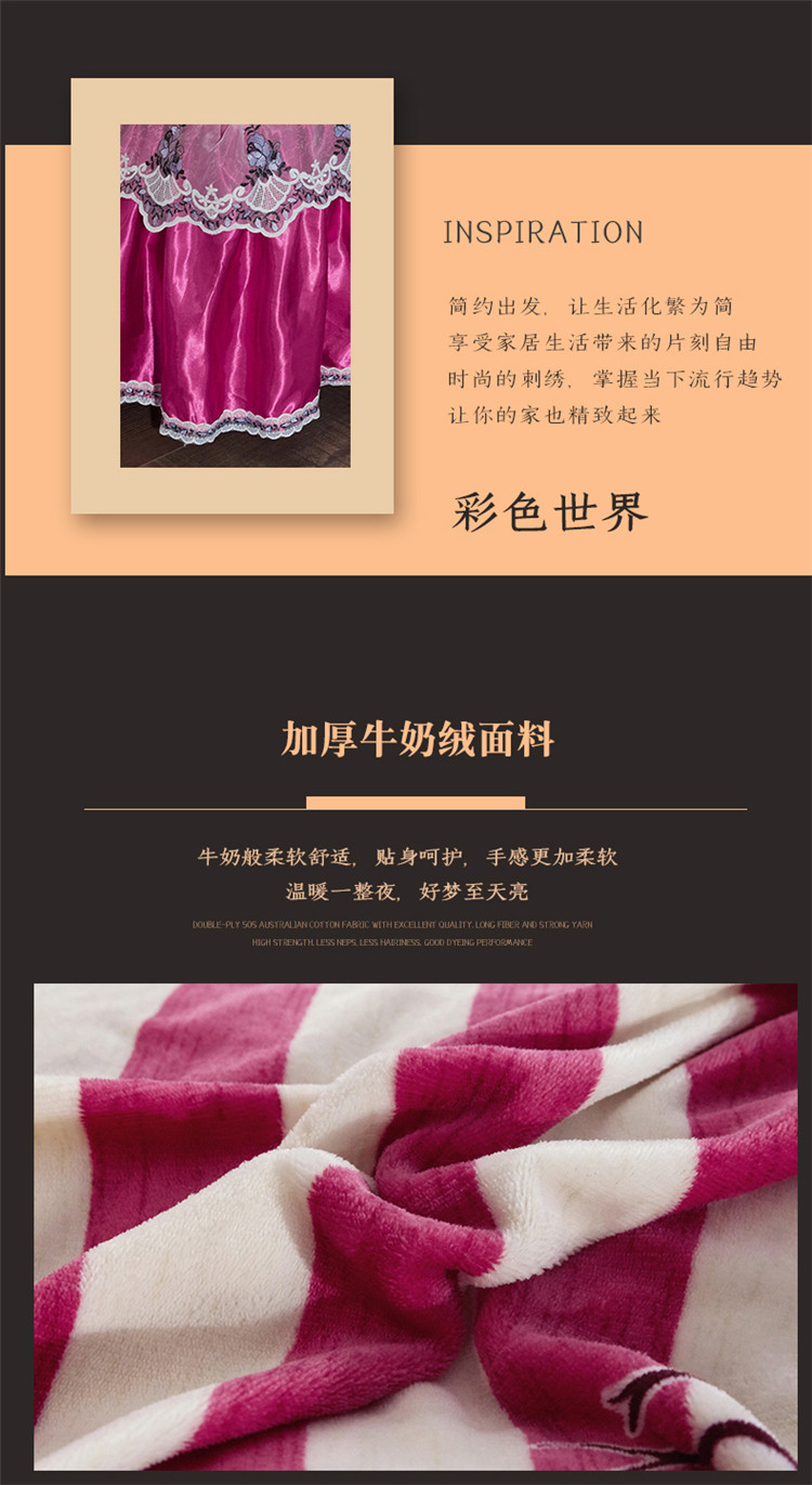 商品名称:浩情国际2019秋冬9月新品保暖牛奶绒床裙四件套系 彩色世界