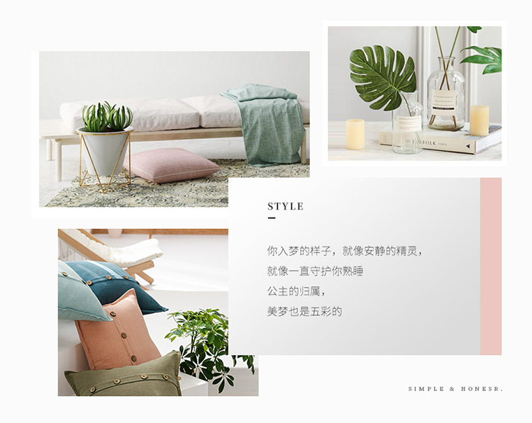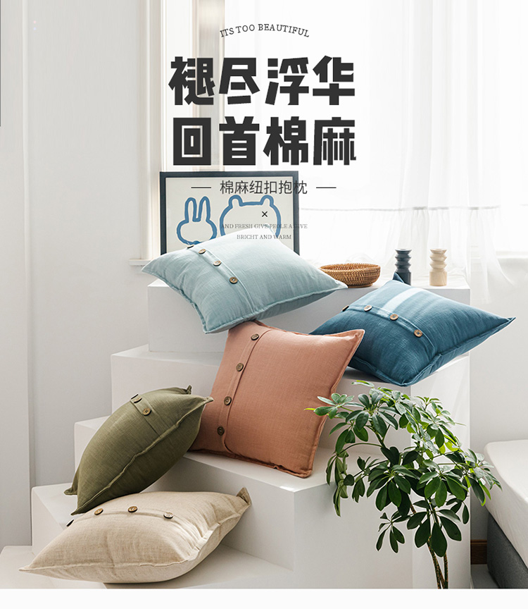 (总)美茉家居日韩简约棉麻素色抱枕椰扣装饰纯色靠垫含芯可拆洗